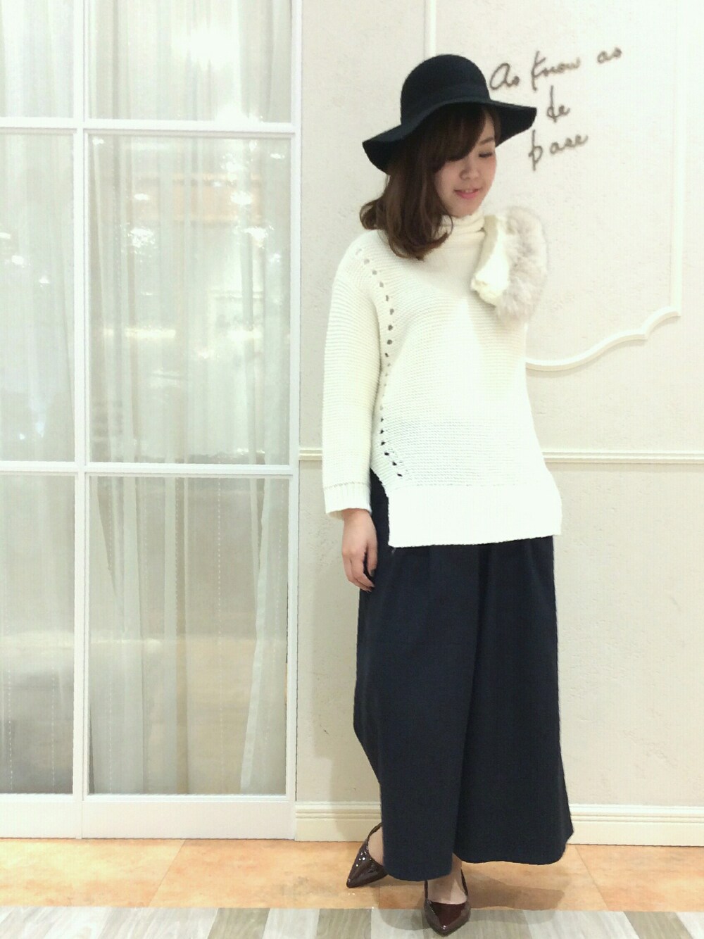 *゜。*゜。*゜。*゜。*゜。*゜。*゜。* 今年人気のガウチョパンツに 女性らしい ホワイトニットコーデ♡ ファーアイテムで 優しいボリューム感を出して… モノトーンで かっこよくまとめて決めてみました! ◇◆◆◆◆◆◆◆◆◆◆◆◆◇ イベントのお知らせです! 《2015年11月13日(金)まで》 只今、博多アミュプラザ店では アズノゥアズポイントカード ★Wポイント★プレゼント! 15,000円(+税)以上で ダブルポイント☆ アウター・コートお買い上げで、 ダブルポイント +2ポイントプレゼント☆☆ ◇◆◆◆◆◆◆◆◆◆◆◆◆◇ 是非この期間にアウターゲットして お得にポイント貯めてください(^o^)/ 心よりお待ちしております。 *゜。*゜。*゜。*゜。*゜。*゜。*゜。*