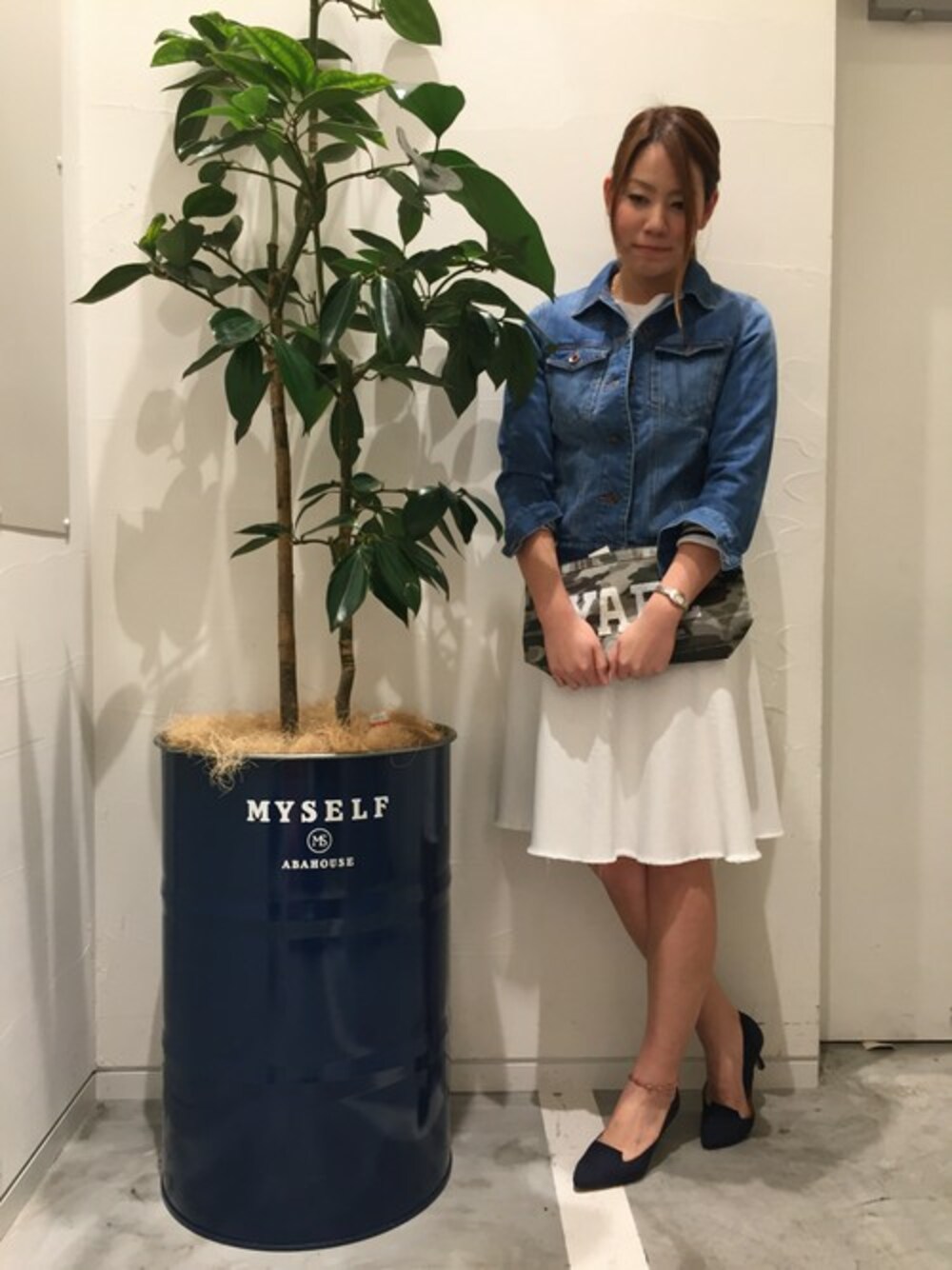 デニムonデニムをコーディネートしてみました!! 今年はデニムがトレンドアイテム!! Gジャンにデニムのフレアースカートを合わせました。 デニムなので透け感がなく白でも1枚でお召しいただけます。そしてフレアースカートですがそこまで広がりがなく大人っぽく着れるのがポイントです。 是非デートやちょっとしたお出かけなどにオススメなスカートです。