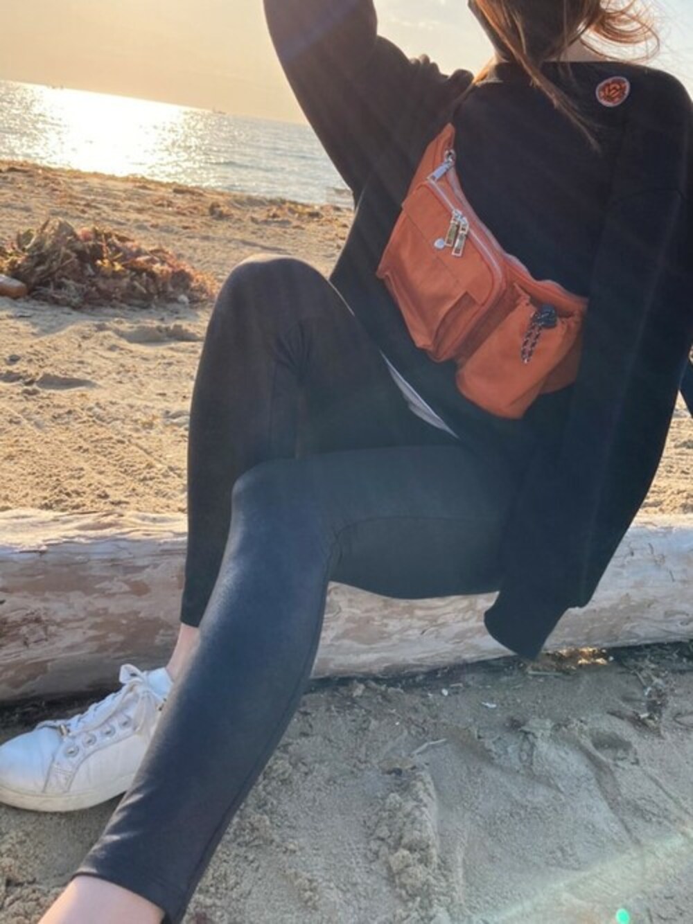オールブラックのワントーンコーデのアクセントに、オレンジのウエストバッグを♬ マルチポケット付きのウエストバッグは収納力も抜群で、とっても使いやすいです! クールでかっこいいスタイルも、アクセントカラーが入るだけで一気にスタイリッシュになりますね☺