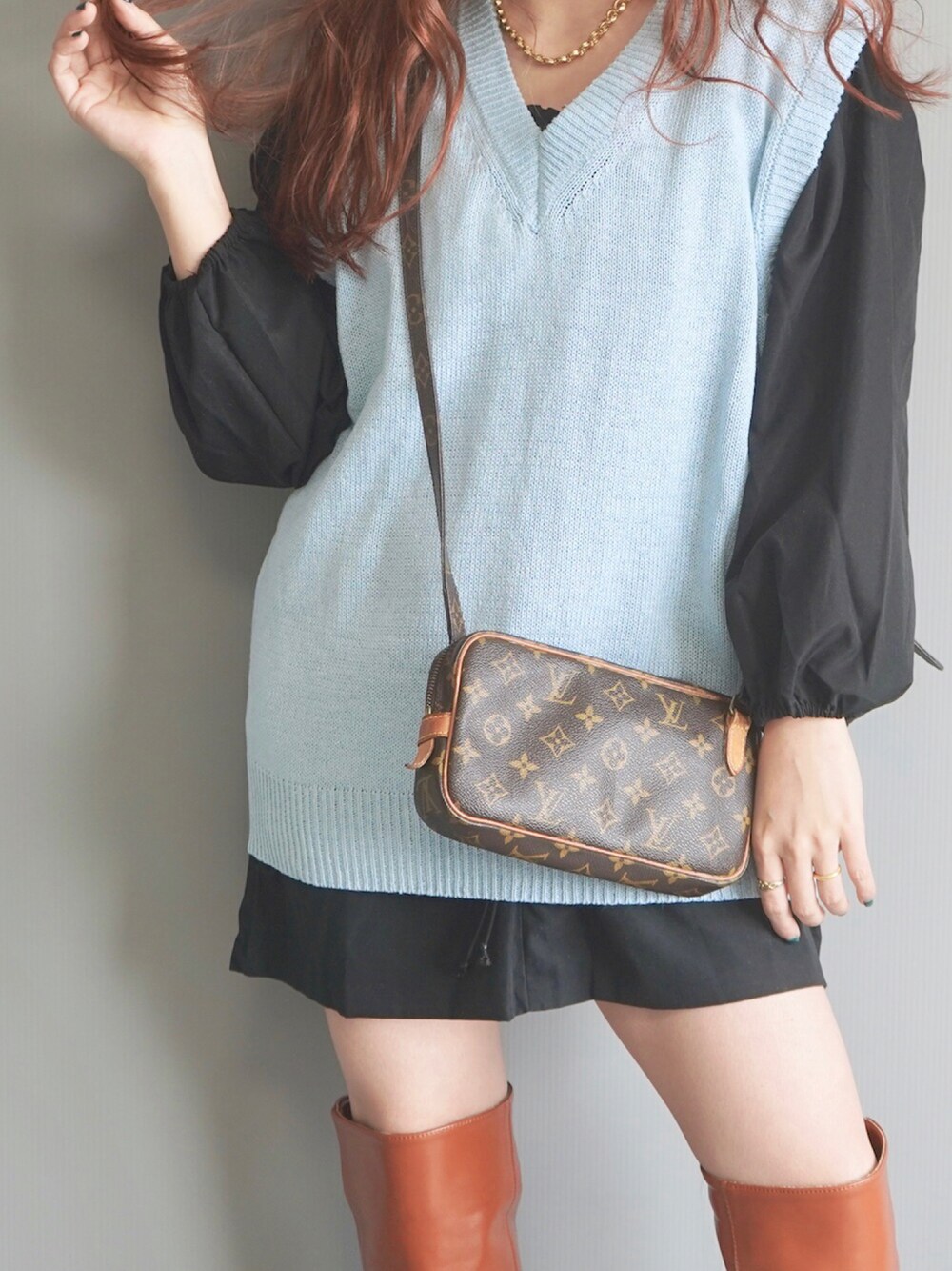 A.D.Gのベスト「V-Neck Big Knit Vest (sky blue)」を使ったコーディネート