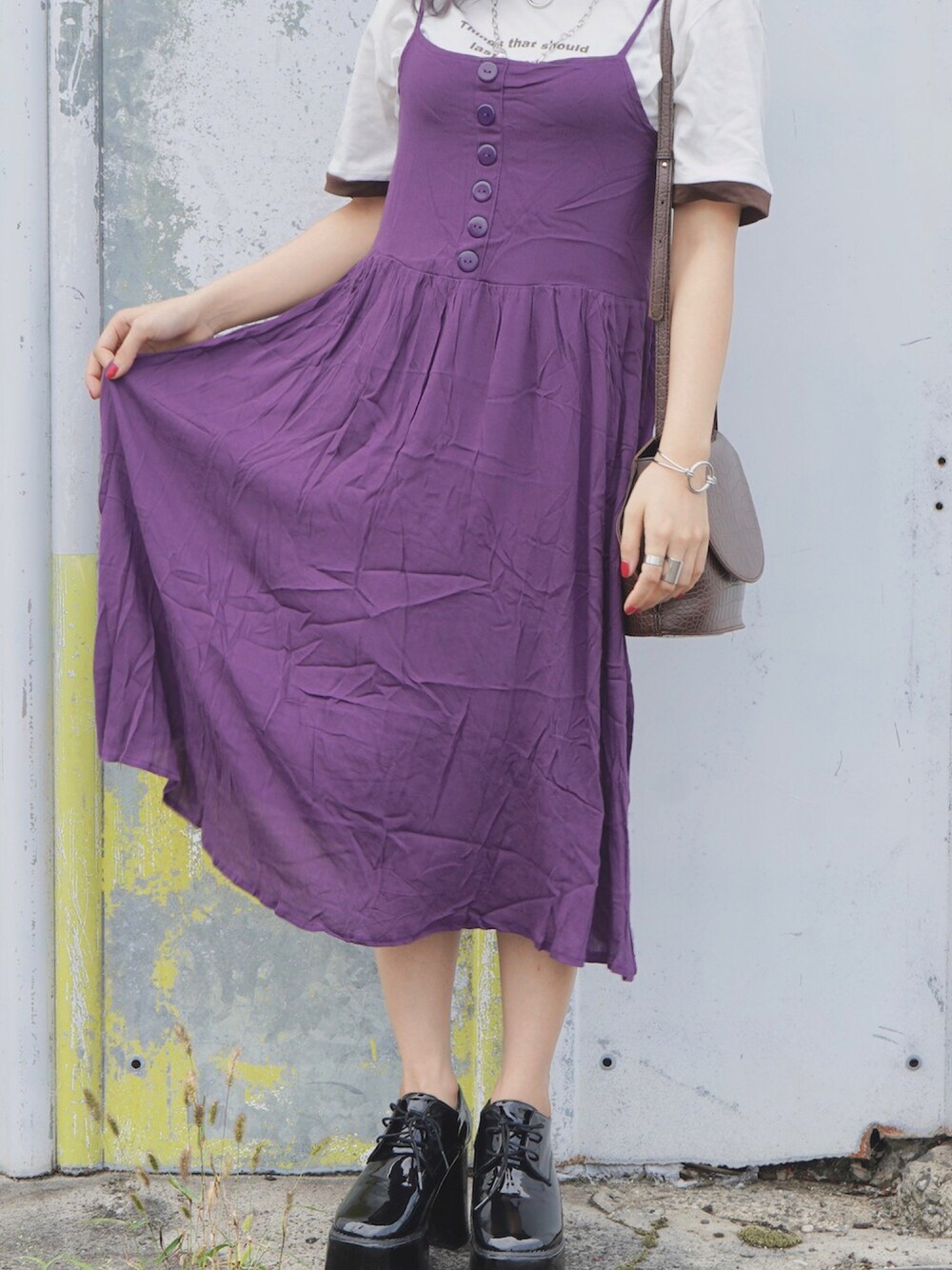 A.D.Gのワンピース「Button Design Cami-onepiece (purple)」を使ったコーディネート