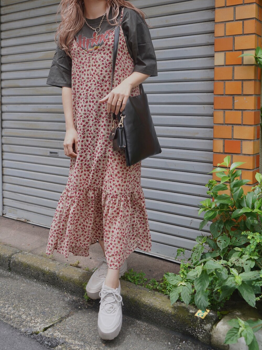 A.D.Gのワンピース「Red Flower Hem-Frill Cami-Onepiece (beige)」を使ったコーディネート