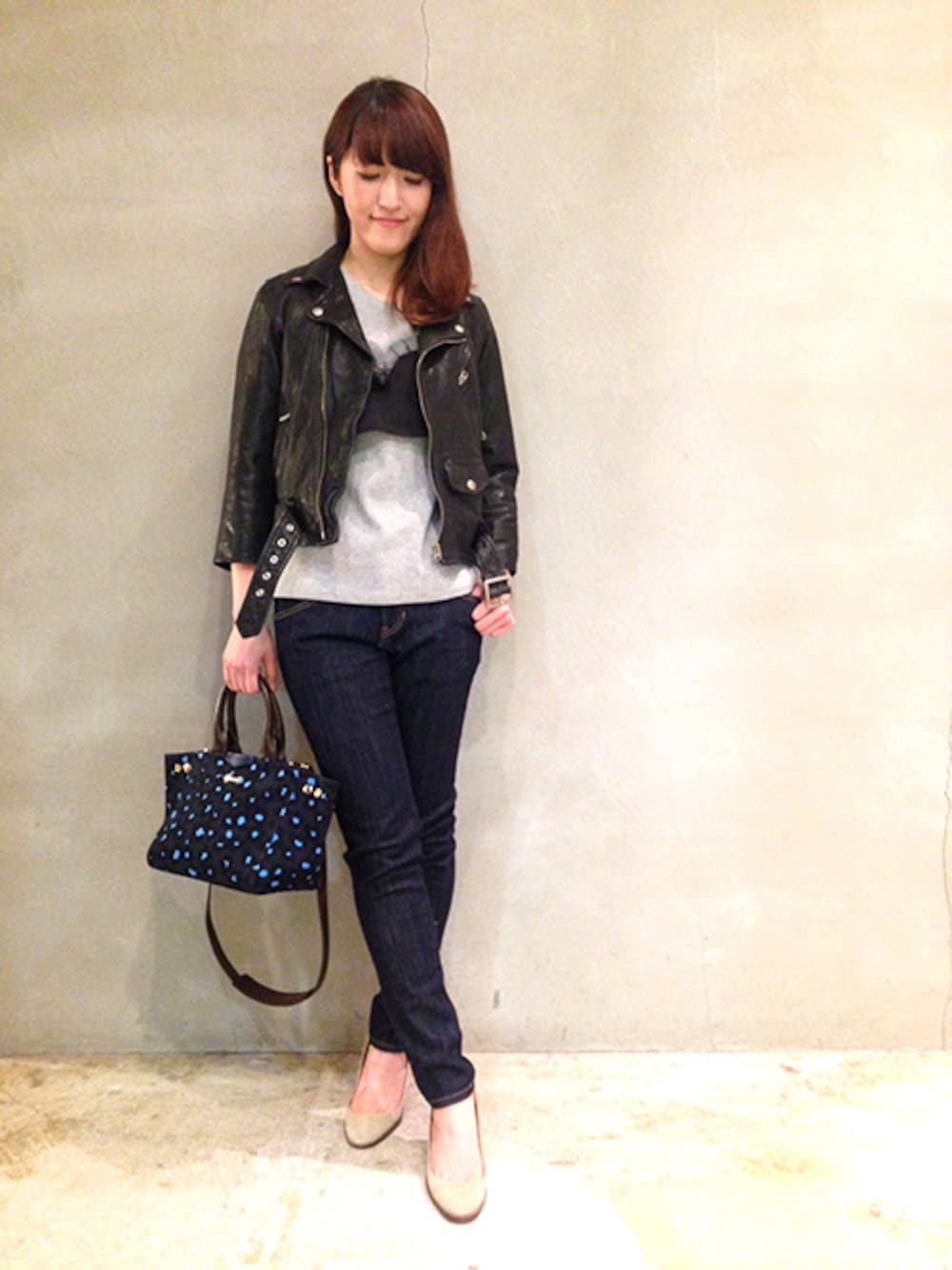 かなりお久しぶりの投稿となってしまいました(>_<)!! みなさまお元気ですか?? Article girlの店内は、すっかり春物で埋め尽くされております☆ 新しくお取扱いを始めたブランドの商品もだいぶ増えてきて、 毎日ウキウキです♪♪ 今日ご紹介するのも、今季からお取扱いを始めたbeautiful people、 MUVEIL、MUVEIL WORKのコーディネートです☆ トップスは、厚手で、1枚でも透け感を気にすることなく着ていただける Honey mi HoneyのビスチェTシャツ。 ボリュームスカートにインしたスタイリングもおすすめです♪ 今回は、MUVEIL WORKのスキニーデニムとコーデ☆ お尻のポケットに大きなリボンモチーフがあるのが、一番のポイント♡♡ アウターは、店頭でも大人気のbeautiful peopleのライダース。 定番商品のシュリンクレザーのキッズライダースは、 この時期雑誌の掲載も多く、「かっこいい♡!!」と思ってよく見ると このライダースだったりする♡ 袖はハンティングジャケットに使用されるピボットスリーブにすることにより、 窮屈さと袖の動きをカバーしたカッティングになっています☆ 伸びが少なく丈夫であり、且つ柔らかいベジタブルなめし革に シュリンク加工を施しused感を出した革を使用した、こだわりの一品です☆ また、バッグも、MUVEIL定番の大人気のお形☆ 今シーズンより、サイドのボタンでシルエットをアレンジ出来る形になったそうですよ♡ お荷物の多い日は広げて、少な目の日は四角いシルエットに、と幅広くお使い頂けます◎ 定番のフラワーレオパード柄は、やさしくどんな方にも合います* コーディネートのポイントにお使い頂きやすいですよ(*^ ^*) 取り外し可能なショルダーストラップ付きなのも、嬉しいですよね♪ 是非、新しいブランドも、チェックしてみて下さい♡ ☆各ブランド2015春夏物が続々と入荷中☆ ご予約も承っております* 尚、セール品は対象外となりますが、 新作・定番商品・予約商品を当店でお買い上げいただくと、 ポイント3~10%にて進呈させていただいております♪ 是非、当店HPもご覧下さいませ(*^^*) http://www.oneness-article.com/top_ladys.htm