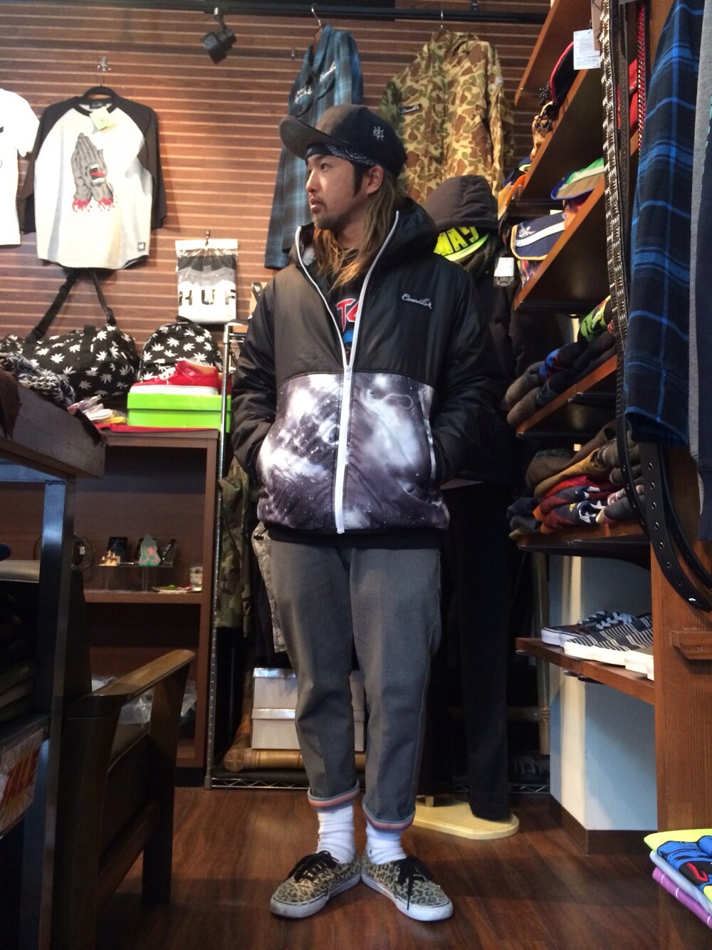 オリジナルのスペース柄はフード裏にも!! 袖、裾はパイピング施してあります。 春の花冷えする季節にピッタリな軽量ライトアウター!!! 中綿入りなので保温もバッチリです^^