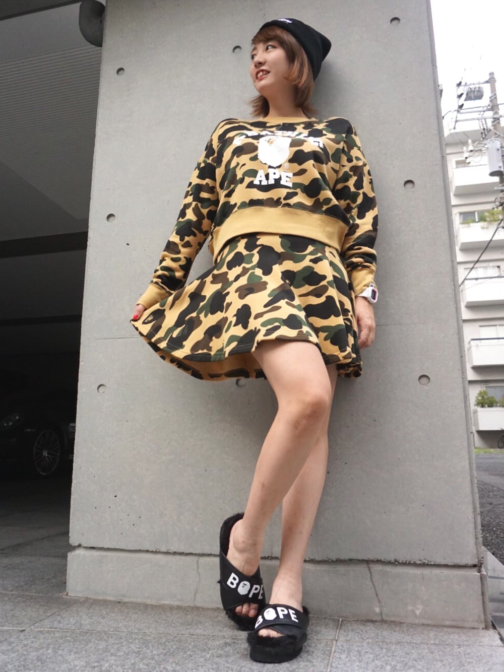 BAPE®LADYのニットキャップ/ビーニー「BAPE STA KNIT CAP」を使ったコーディネート