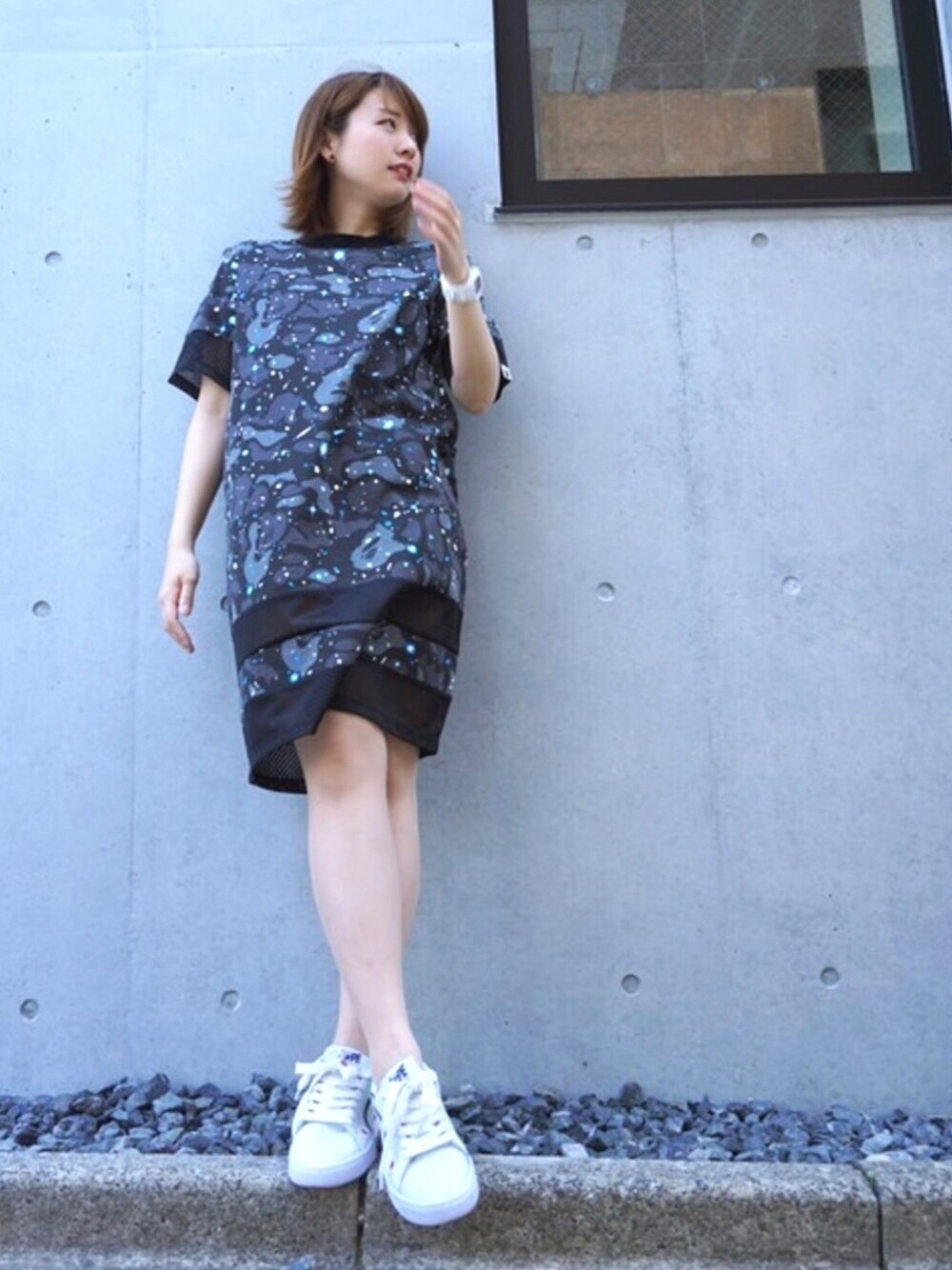 BAPEのオリジナルカモフラージュ柄「スペースカモ」が目を引くワンピース。一枚で着るのはもちろん、パンツやスカートなどともマッチしラフな着こなしを演出します。