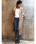 チェック柄のコートはベーシックなTシャツとスキニーパンツに合わせて サラッと羽織れば一気にお洒落に★