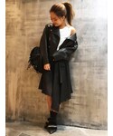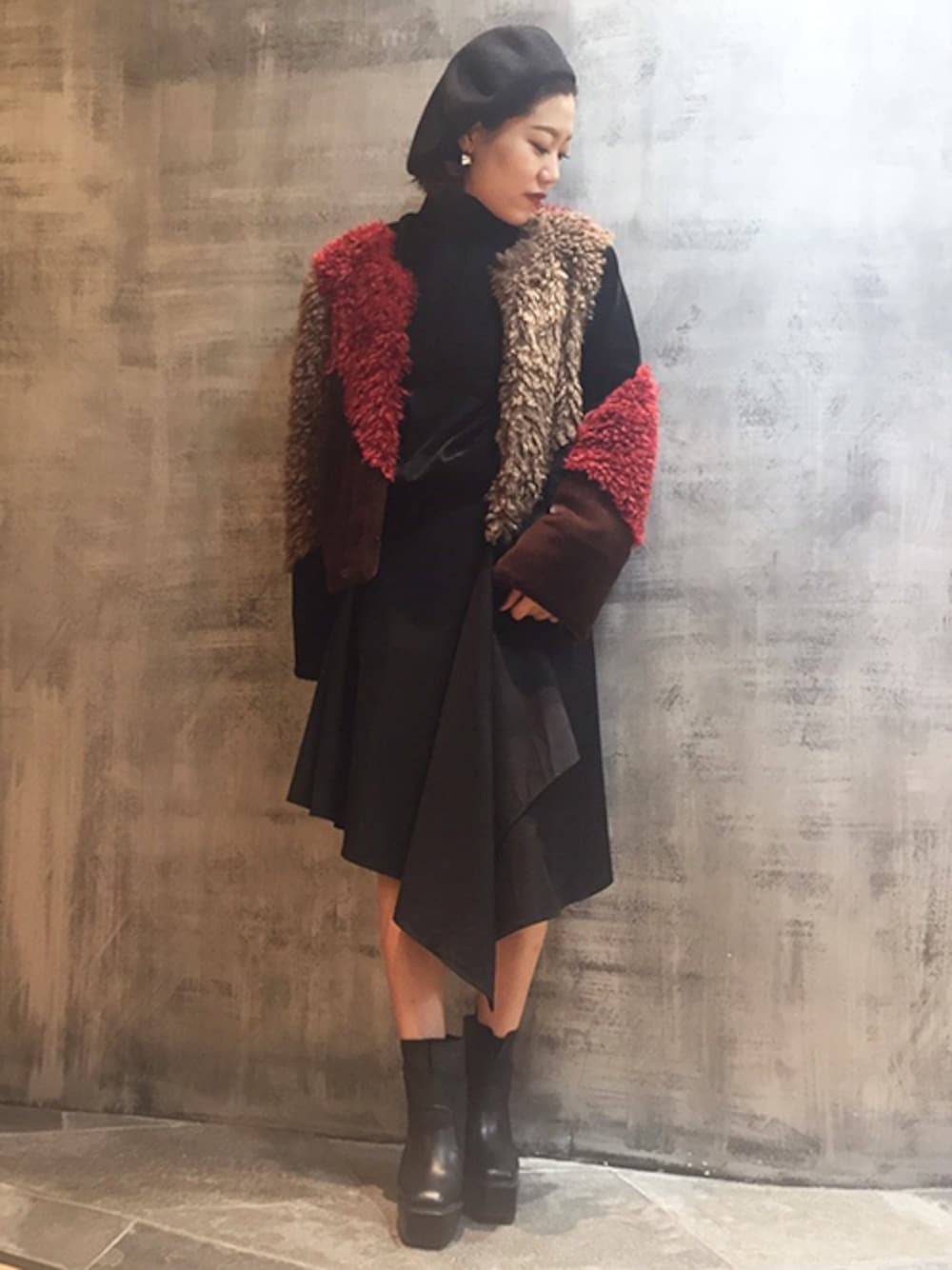 ノーカラーのファーコートにハイネックトップスを合わせて アシメスカートで女性らしく仕上げてみました★