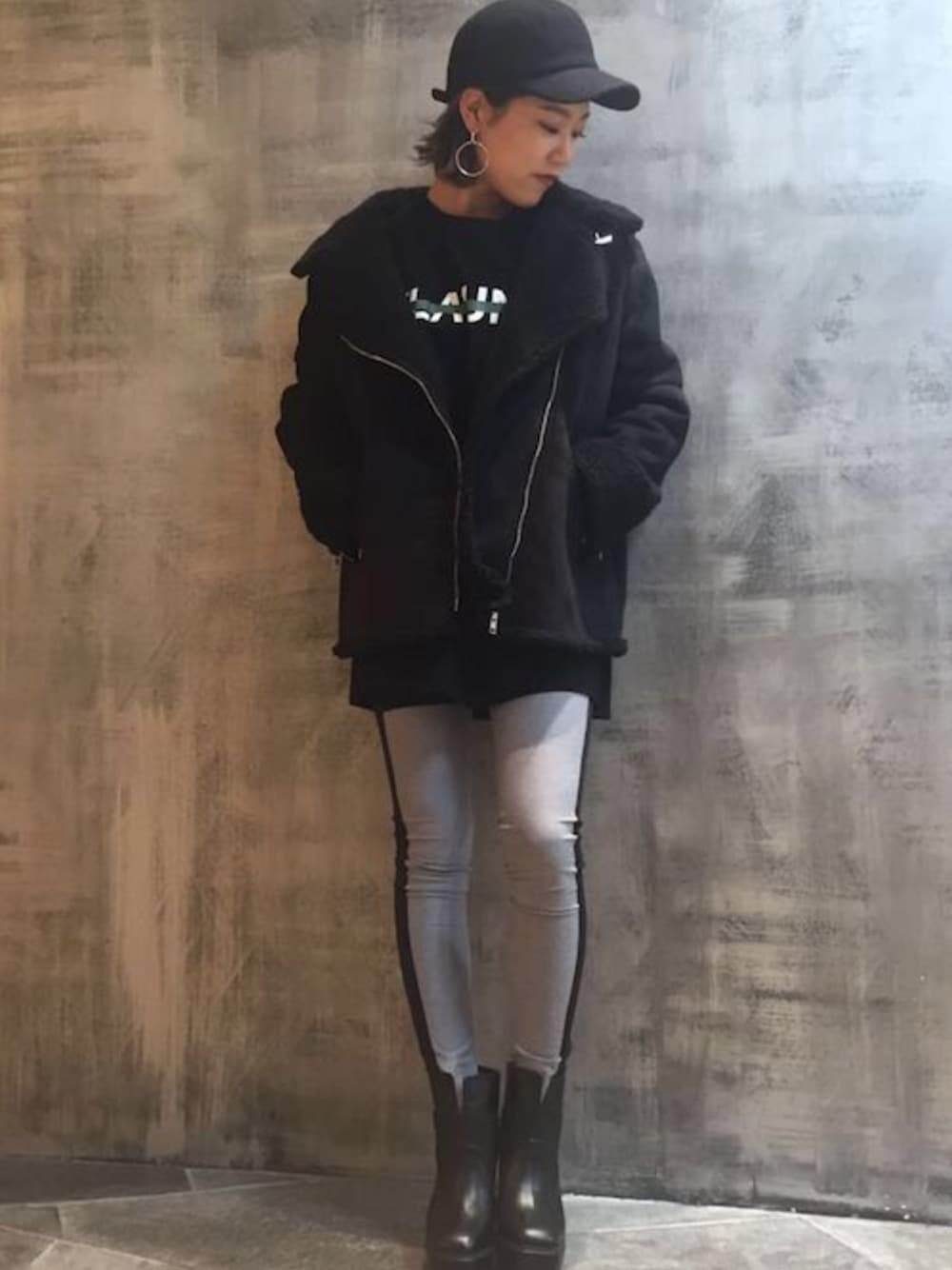 ムートンコートのインナーには ロゴTとグレーのレギパンで スポーツカジュアル★