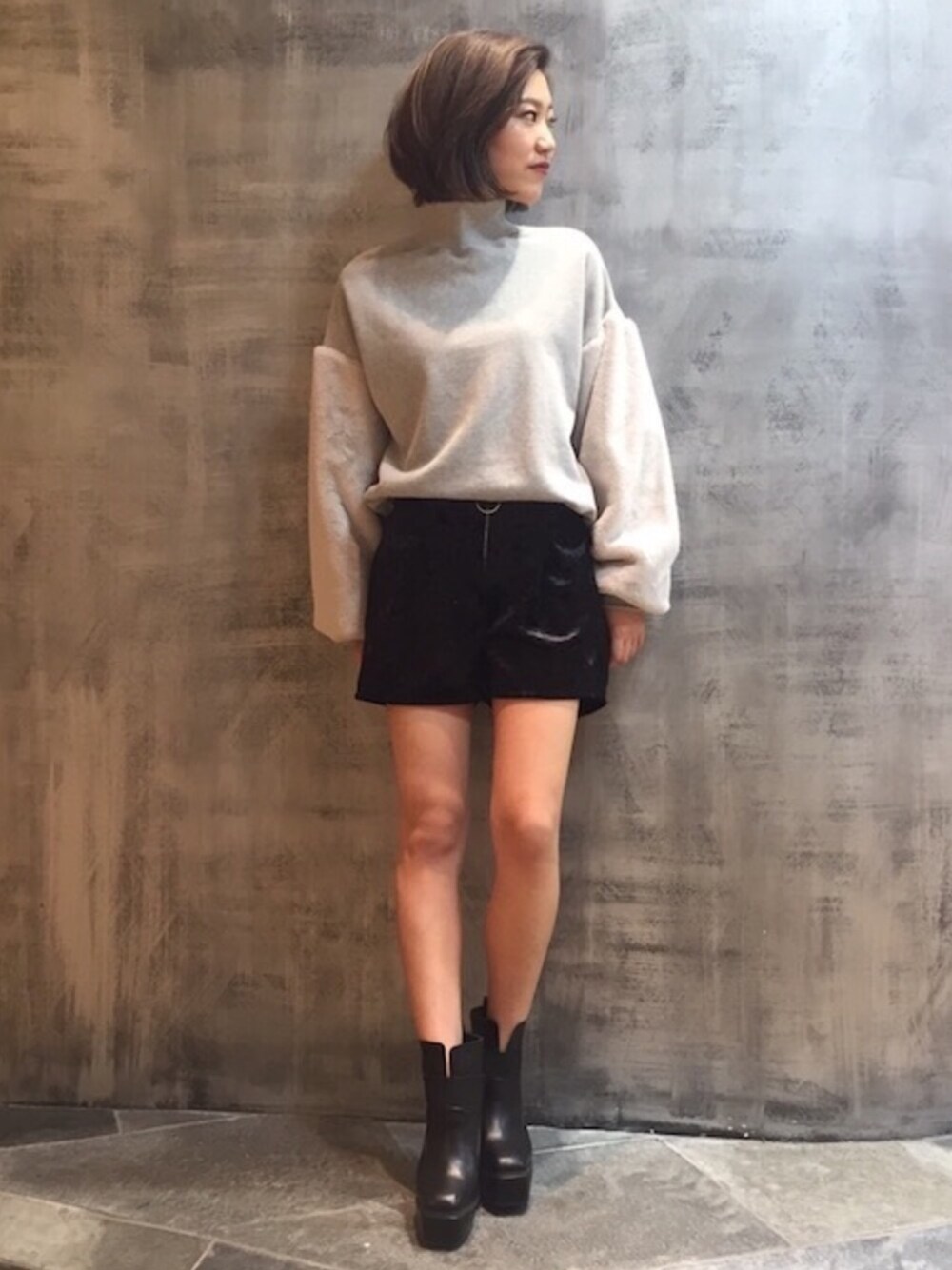 トレンドのスウェット生地のトップスと ベロアのショートパンツで合わせてみました☆