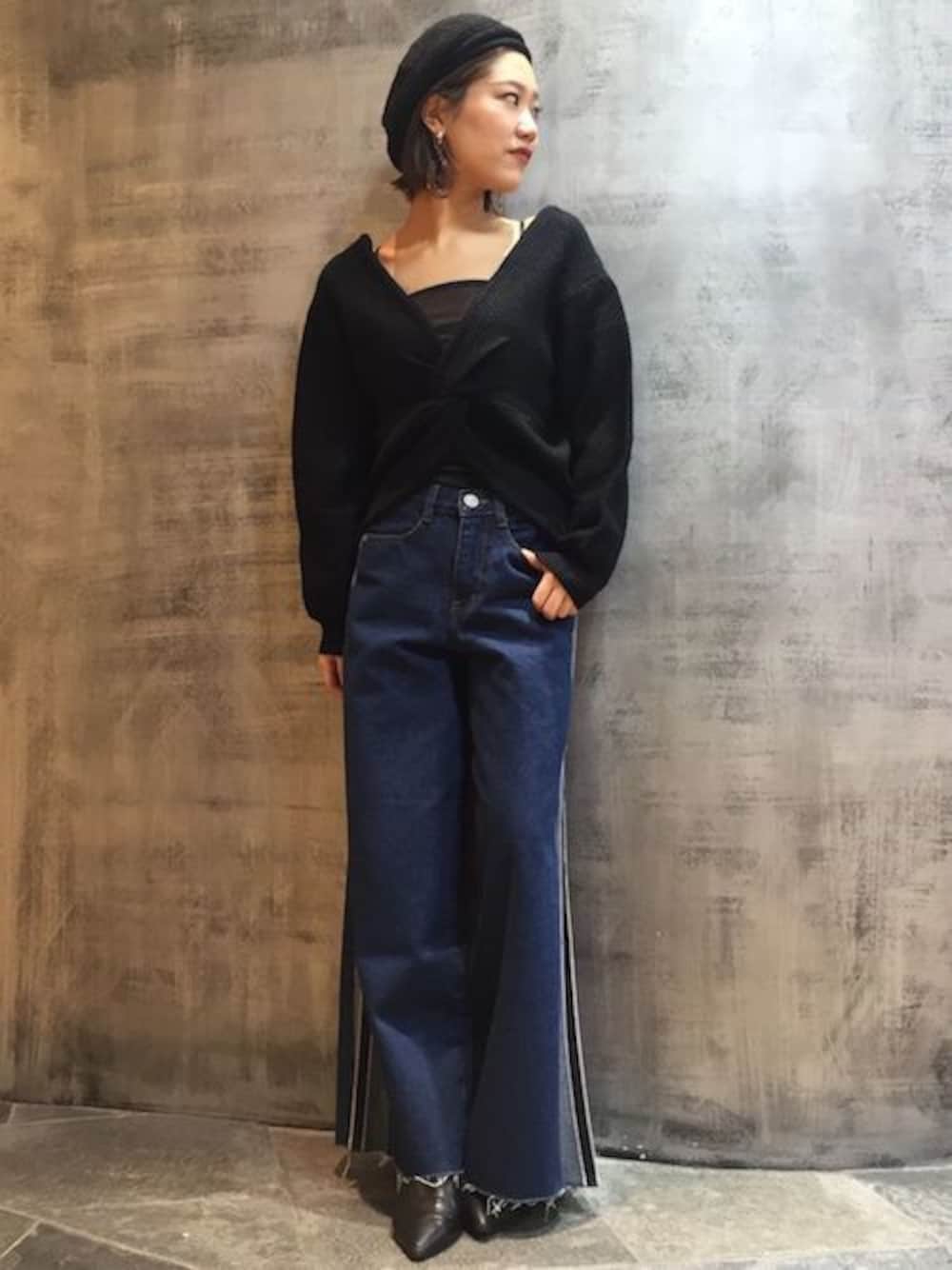 ツイストニットとトレンドのサイドラインパンツのコーデ♬