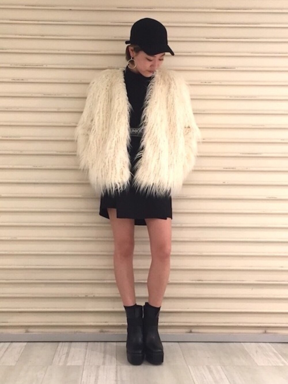 AIのノーカラージャケット「チベットラムフェイクコート」を使ったコーディネート