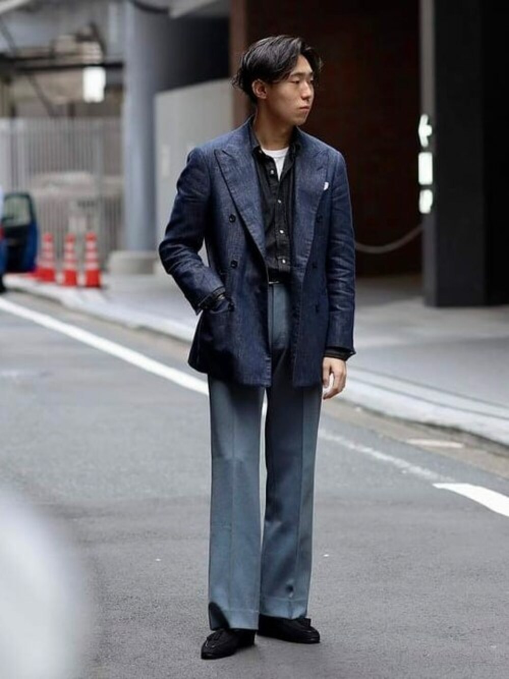 スーツの組上だけを単品で使ったコーディネートです。 色数を絞ってデザインや素材感、小物の色合いを引き立てました。 ビームス ハウス メン 横浜 / 髙橋 建哉