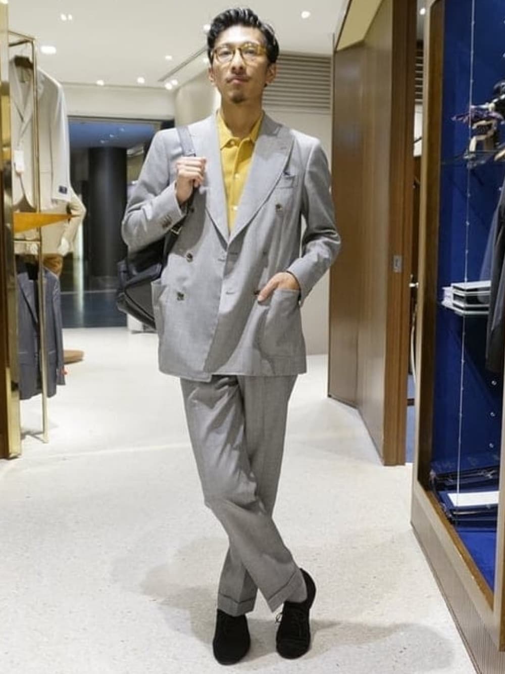 アンタイドスーツスタイルに<S.MANO>のDAY PACKを合わせました。シボ革のレザーは高級感がありクラス感があがります。 ビームス 六本木ヒルズ / 池上 大地