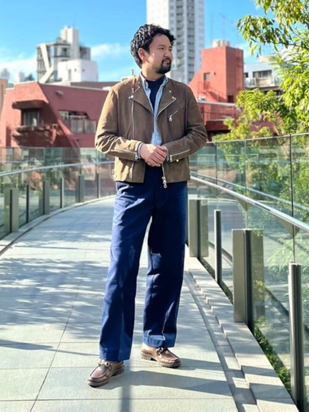 <CINQANTA>のスタンドカラーのスエードライダース着てみました。中にモックネックのカットソーにシャツを合わせてレイヤードしてみました。これからの時期や春先などに良いですね。 ビームス ハウス 六本木 / 高橋 明寛