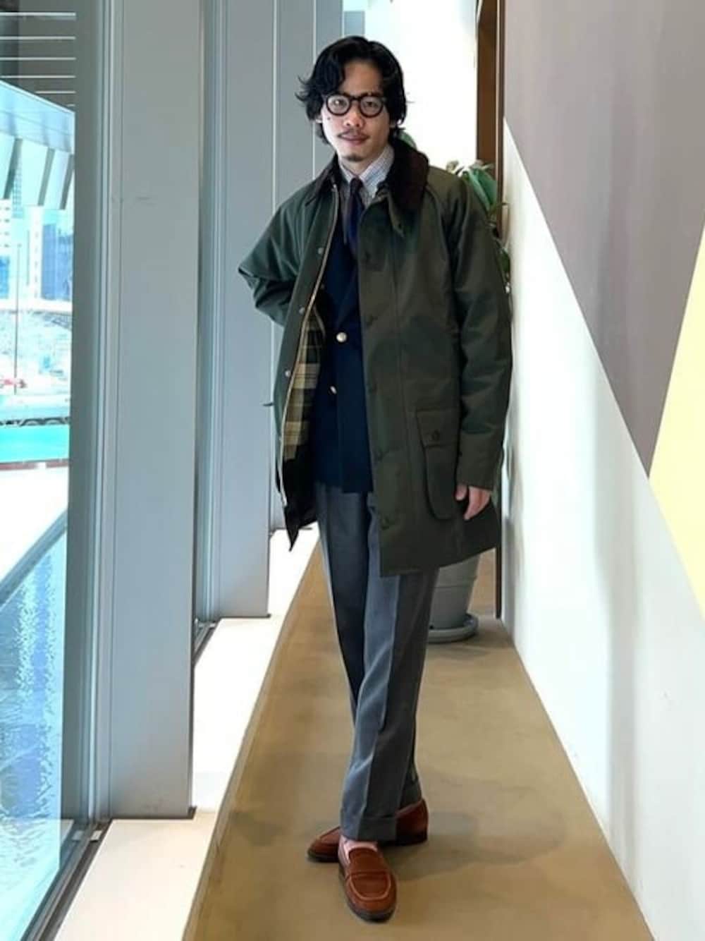 BARBOUR (バブアー)のGAMEFAIRをいつものブレザースタイルに羽織ってみました。size38で程よくゆとりがあります。春夏モデルは生地が薄いなと感じられる方にはこの2レイヤーがオススメです。ノンオイルですが撥水性にも優れており、カジュアルスタイルにも使えます。ビデイルよりも着丈の長い安心感のあるデザインです。 ビームス ハウス 梅田 / 阿部 宙都