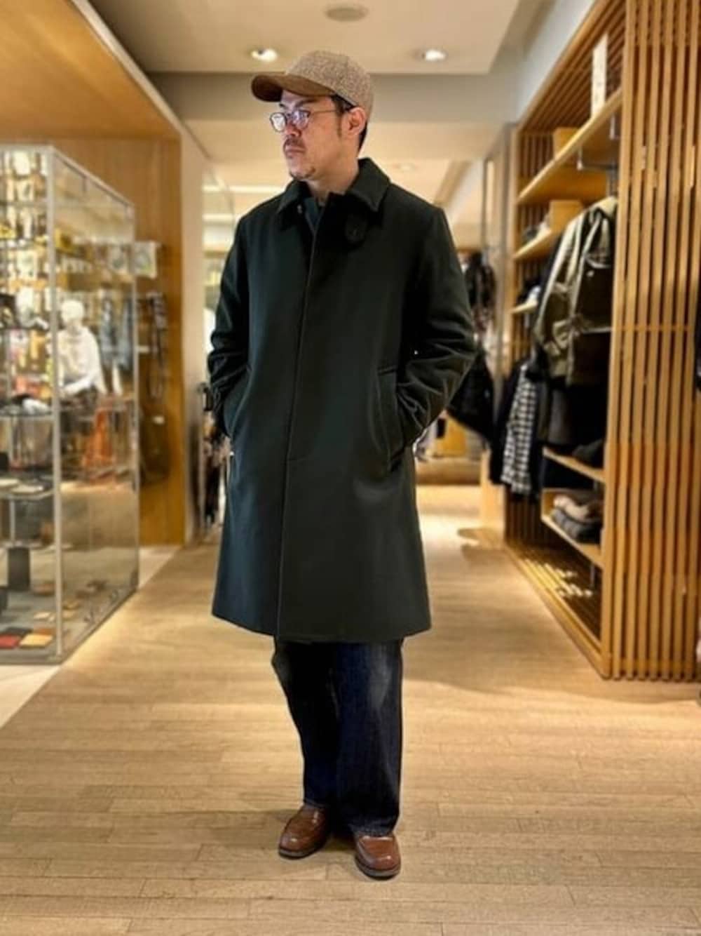 BEAMS F(BEAMS MEN)のステンカラーコート「【別注】MACKINTOSH / DUNKELD メルトン ステンカラーコート」を使ったコーディネート