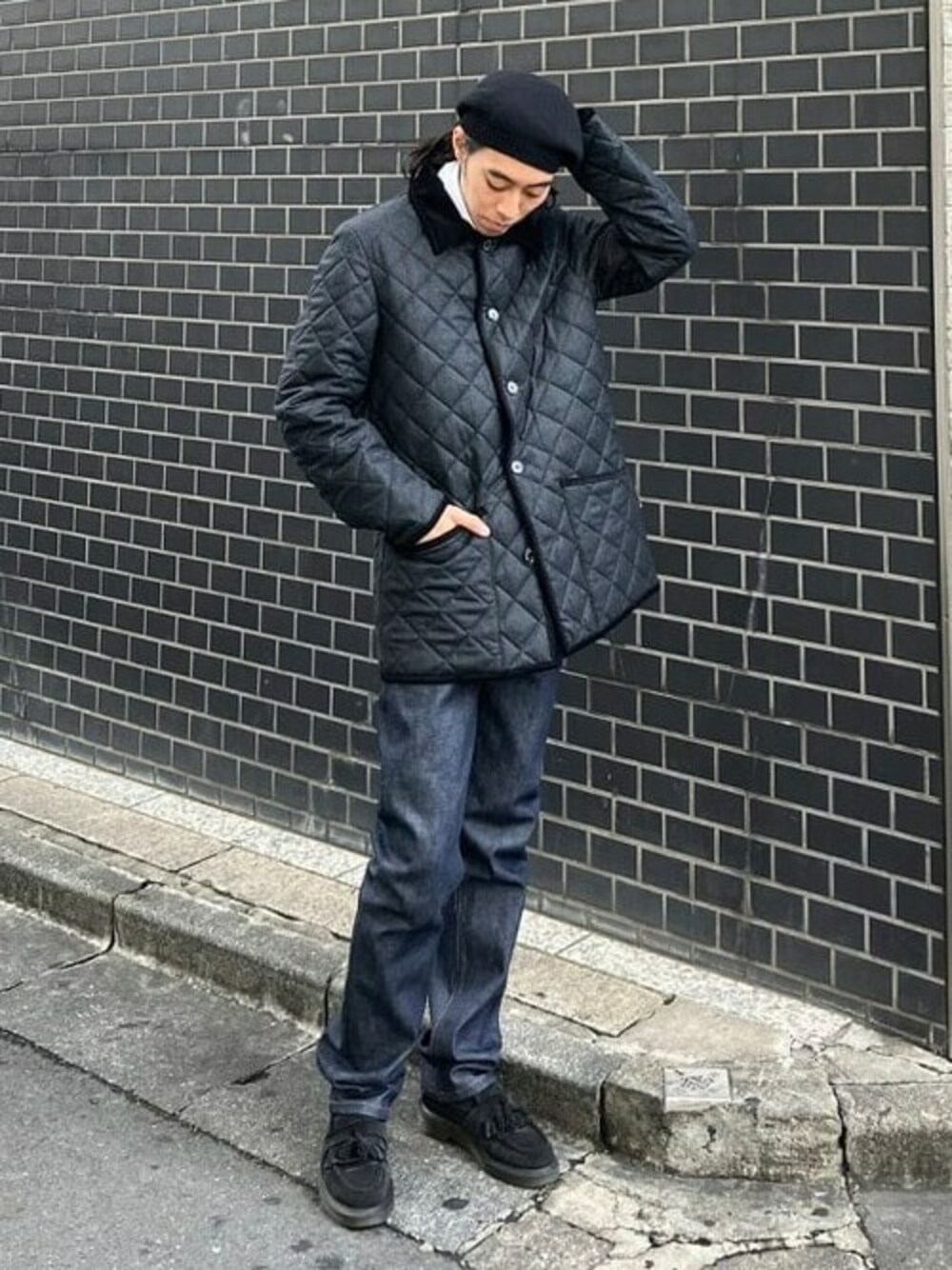 〈MACKINTOSH〉オンオフ兼用で使えるキルティングジャケット。暖かみのあるウール素材も魅力です。 ビームス 新宿 / 久保 健斗