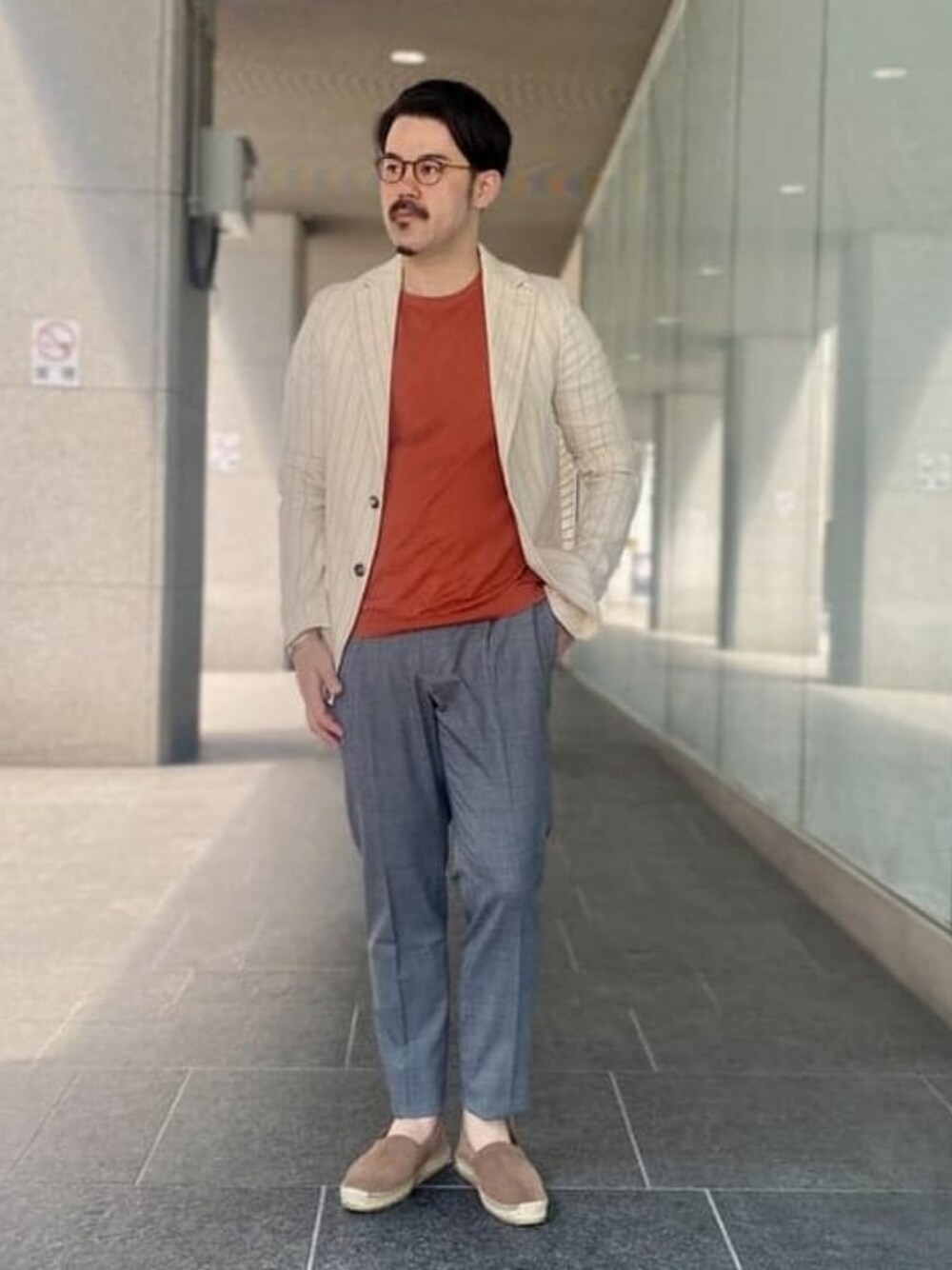 <CIRCOLO(チルコロ1901)>コットンリネンストライプジャケットは、リネンの風合を残しつつストレッチを加えたブランドらしい1枚です。素材感もドライタッチな物や軽快感のあるアイテムで清涼感をだしてみました。 ビームス 札幌 / 齊藤 慶