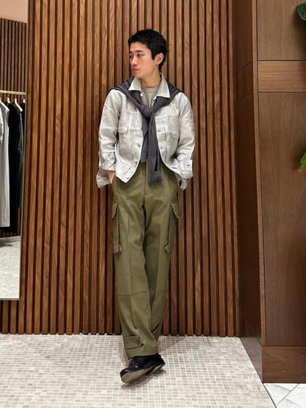 【身長170cm 細身体型】 今回はJeanikのリネンジャケットをメインに組んだカジュアルスタイル。 シーズントピックにもあるライトグレーで上をまとめつつ、M-47でアクセント。 リネン生地に墨染めをした2ndは軽い着心地に清涼感ある仕上がりは非常にお勧めです。 よろしければご参考に。