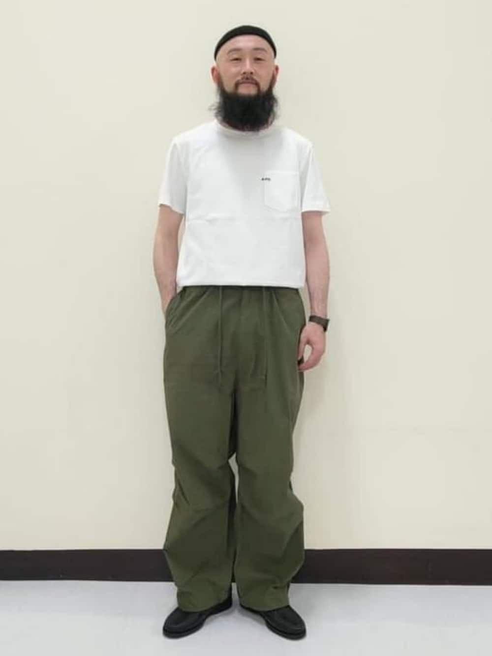 控えめなロゴがオシャレなTシャツです。光沢のある生地感も上品で、シンプルなスタイリングで合わせるのがオススメです。 ビームス 姫路 / 小原 亜樹