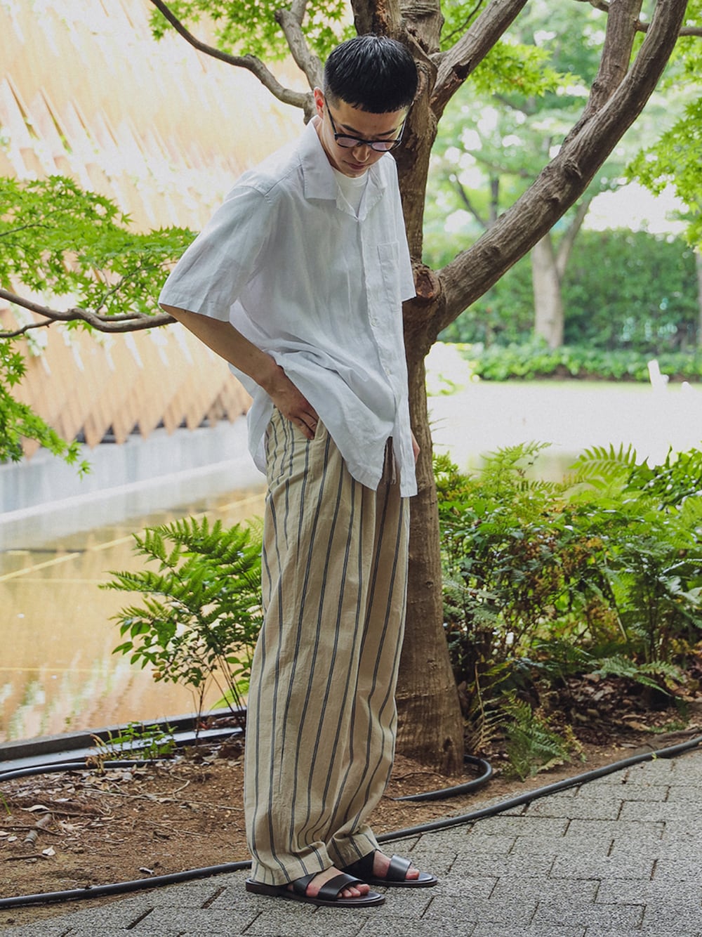 シンプルな合わせですが、全体的にサイズを大きめにしてすこしでも涼しげに! ビームス 梅田 / 清水 皓太