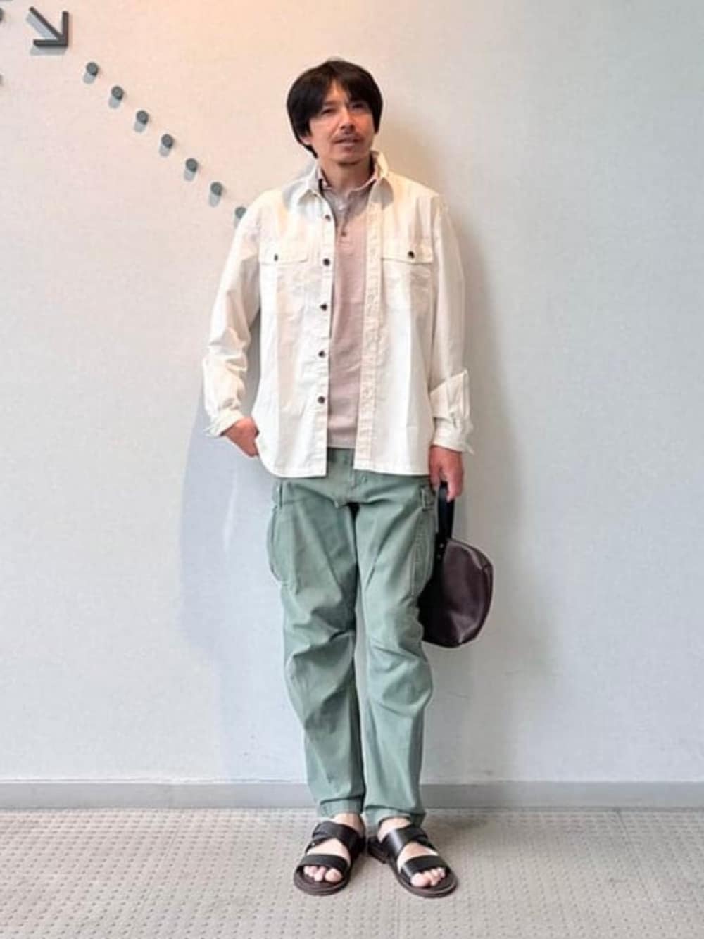 カジュアル化の流れで、2つポケットのついた『シャツジャケット』のようなアイテムが注目されています。インポートブランドでも多種多様なモデルが販売されていますが、今日はオリジナルのシャツをメインにスタイリング。シャツジャケットをお持ちでない方にとてもお勧めの一枚です。インナーには襟付きのポロシャツを。しかも白ではなく、ベージュを合わせたところがポイントです。 ビームス 名古屋 / 岸本 欣也 (きんや)
