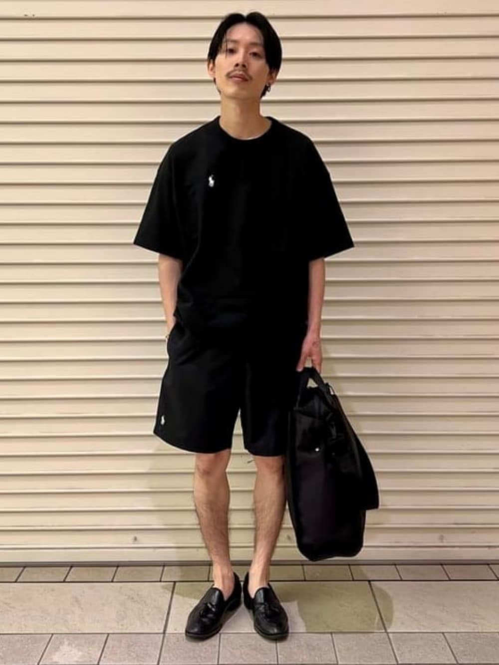 【black】全身黒のコーディネートにしました。アクティブなショートパンツにローファーの気分だったので、綺麗めな雰囲気で合わせました。 ビームス 静岡 / 保崎 光貴