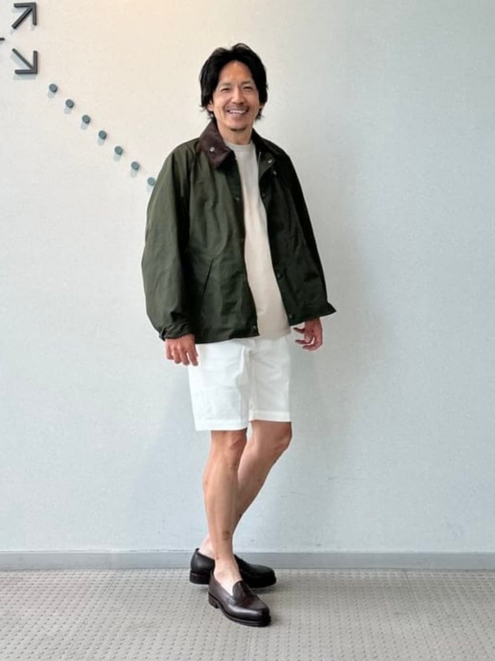 【セール速報】なんと!春夏で人気を博したBarbour 『TRANSPORT 』ポリエステルバージョンが値下げです!今すぐ着れない、なんて考えている間に良いサイズが欠ける可能性ありです。今日はバブアーのTシャツを合わせて。ショーツにローファーで、大人カジュアルにまとめてみました。 ビームス 名古屋 / 岸本 欣也 (きんや)