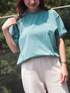 最近の暑さには気が滅入りますね…。気分だけでも涼しげにしたいときに意識的に「ブルー系」のアイテムを選ぶようにしています!とろみのあるゆったりとしたボトムを合わせました。カラー展開も豊富なので、男女問わずおすすめですよ。