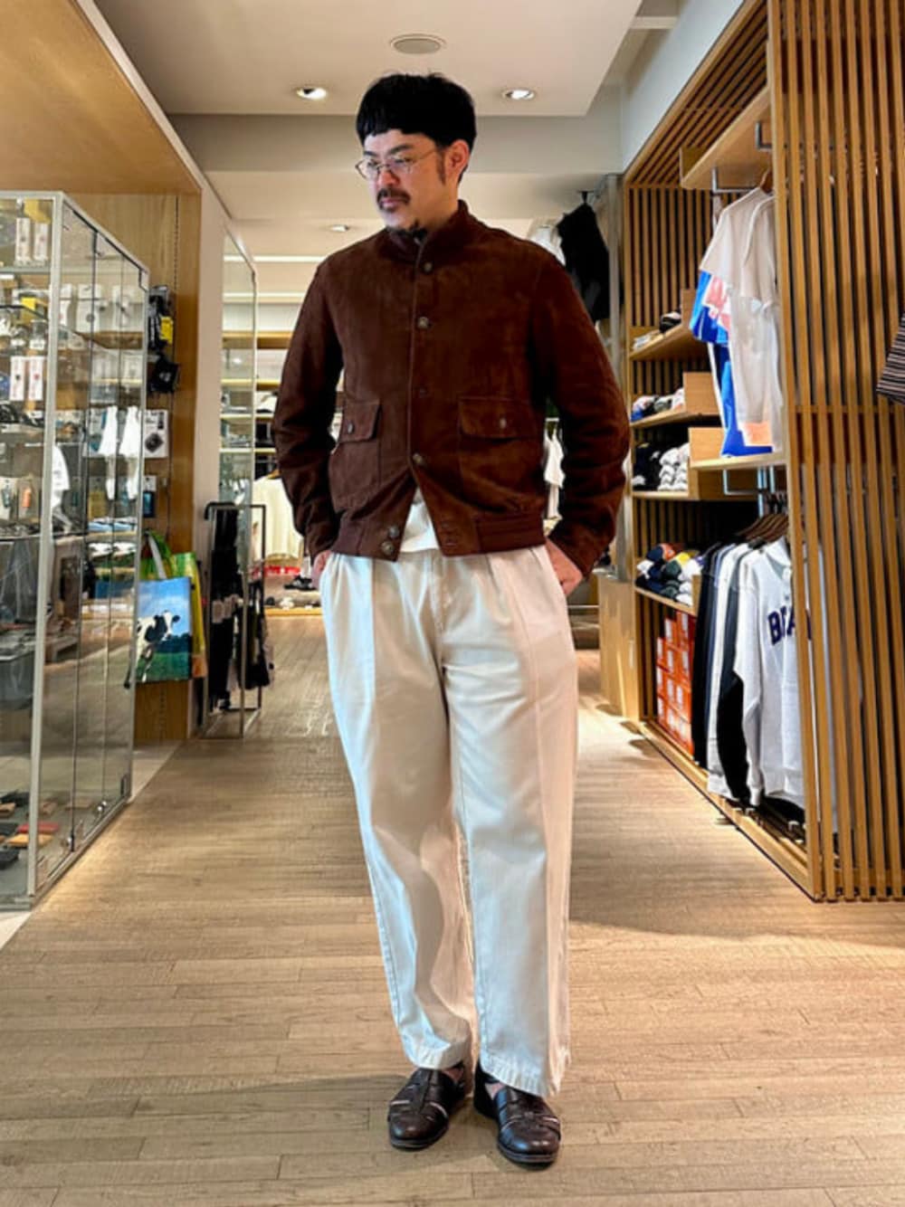 BEAMS F(BEAMS MEN)のブルゾン「CINQUANTA / 別注 スエード ドライビングブルゾン」を使ったコーディネート