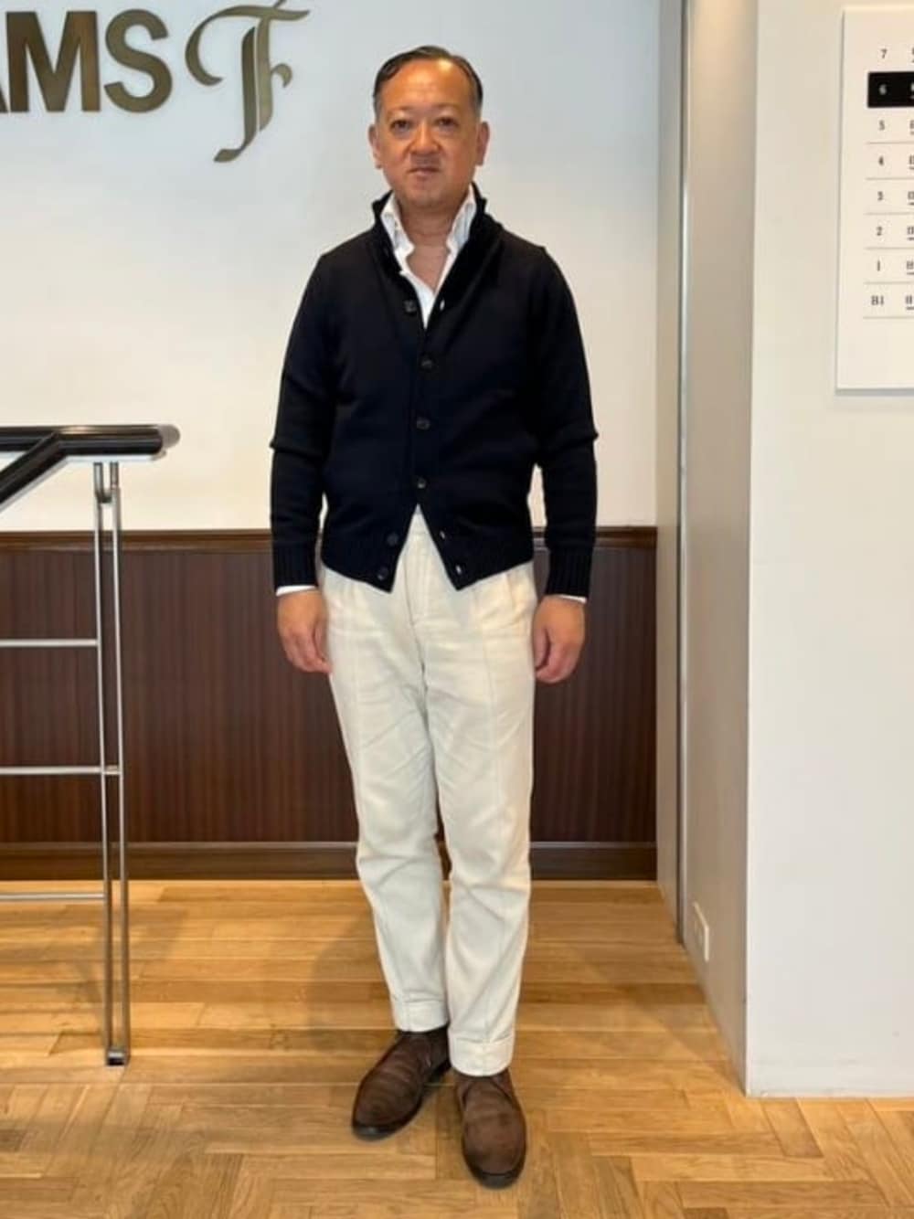 BEAMS F(BEAMS MEN)のカーディガン/ボレロ「ZANONE / CHIOTO 5ゲージ スタンドカラー カーディガン」を使ったコーディネート