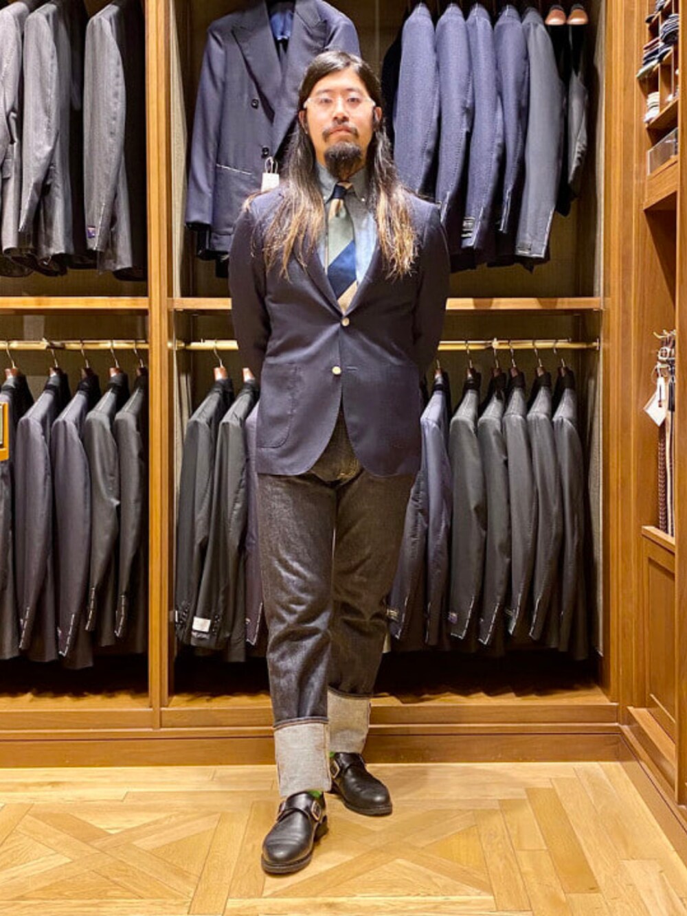 ゴキゲンスタイル 新規入荷のオリジナルデニムはストレートなシルエットがいい感じ。こだわりが詰まった一品です。ブレザー、シャンブレーシャツ、レジメンタルタイと、たまにはベーシックなスタイリング。 ビームス ハウス なんば / オオカワ
