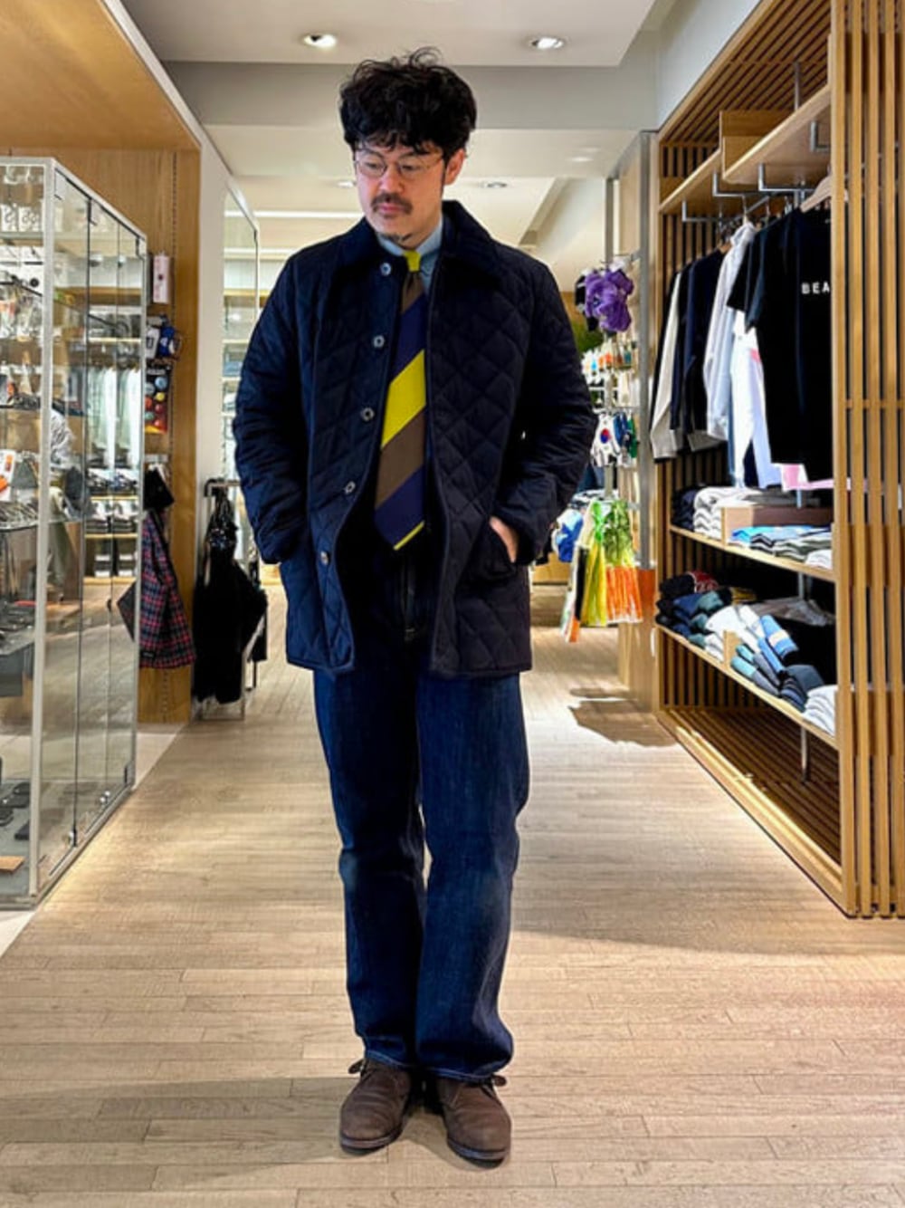 BEAMS F(BEAMS MEN)のブルゾン「【別注】MACKINTOSH / WAVERLY ウール キルティングジャケット」を使ったコーディネート