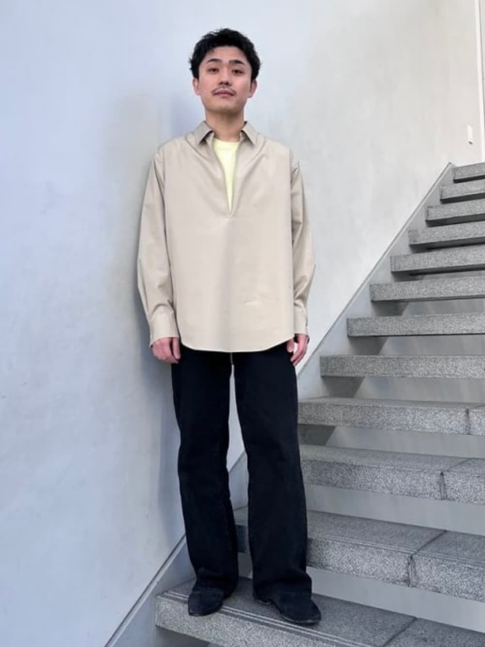<QUATTROCCHI>26SS商材が入荷。横からのシルエットが綺麗なスキッパーシャツ!この前開きの深さがありそうで無いんです!春先のレイヤードが楽しくなりそう!僕はイエローのTシャツに合わせたい!オススメです! ビームス 六本木ヒルズ / 伊藤 柊介