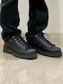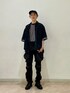 黒を基調としたコーディネートです。インナーをNAVY×GREYのボーダーにすることで重たい印象にニュアンスを与えました。 ビームス 新宿 / 矢藤 ジョー