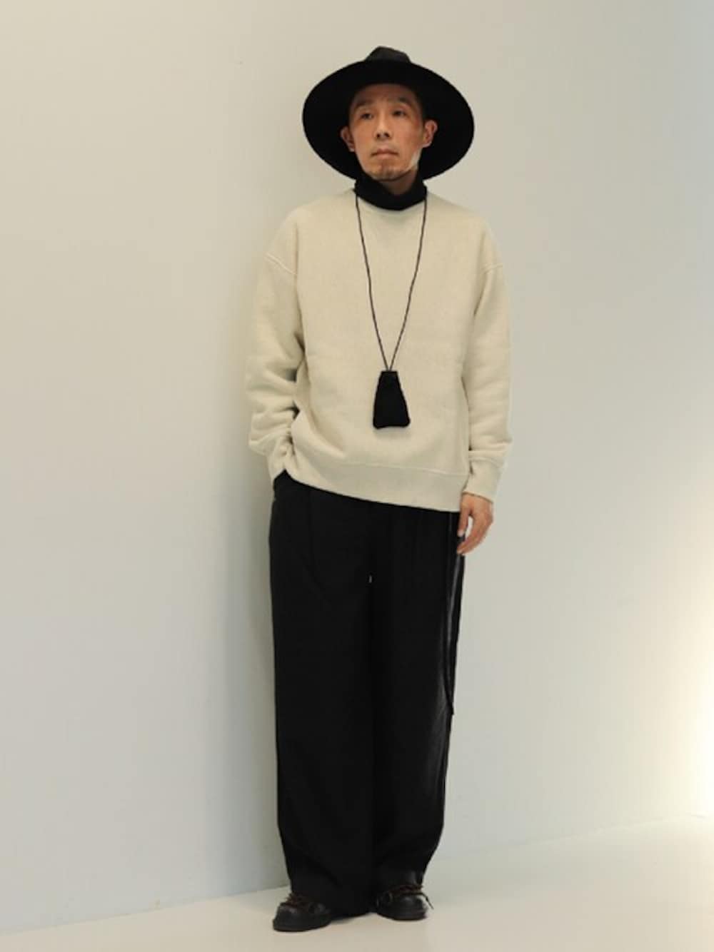 今日はシンプルに。ビンテージディテールのスウェットシャツのインナーにタートルネックをレイヤード。防寒+冬コーデ感が増すので個人的に多用しています。