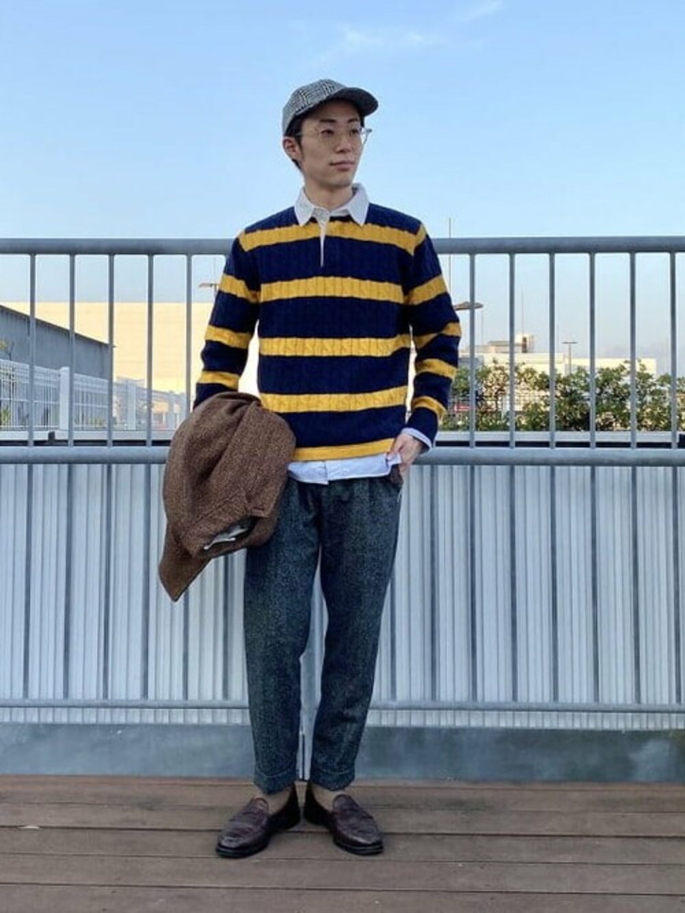 クラシックな配色のラガーニットですが、よく見るとケーブル編みになっている些細な変化が自分好みです。王道のスタイルでもしっかりアクセントになります!