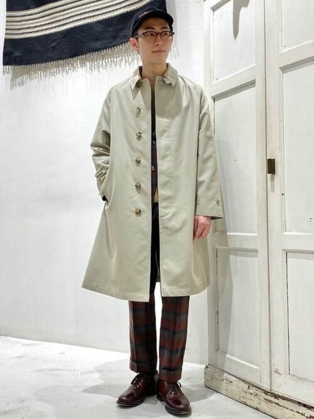 ダークマドラスチェックは今シーズンお勧めの配色です。柄のセットアップですが深みのあるカラーでしつこく感じない点が魅力です。ケーブルニットにキャップを合わせ足元にはサドルシューズを選びスポーティーなこなしを楽しみました!