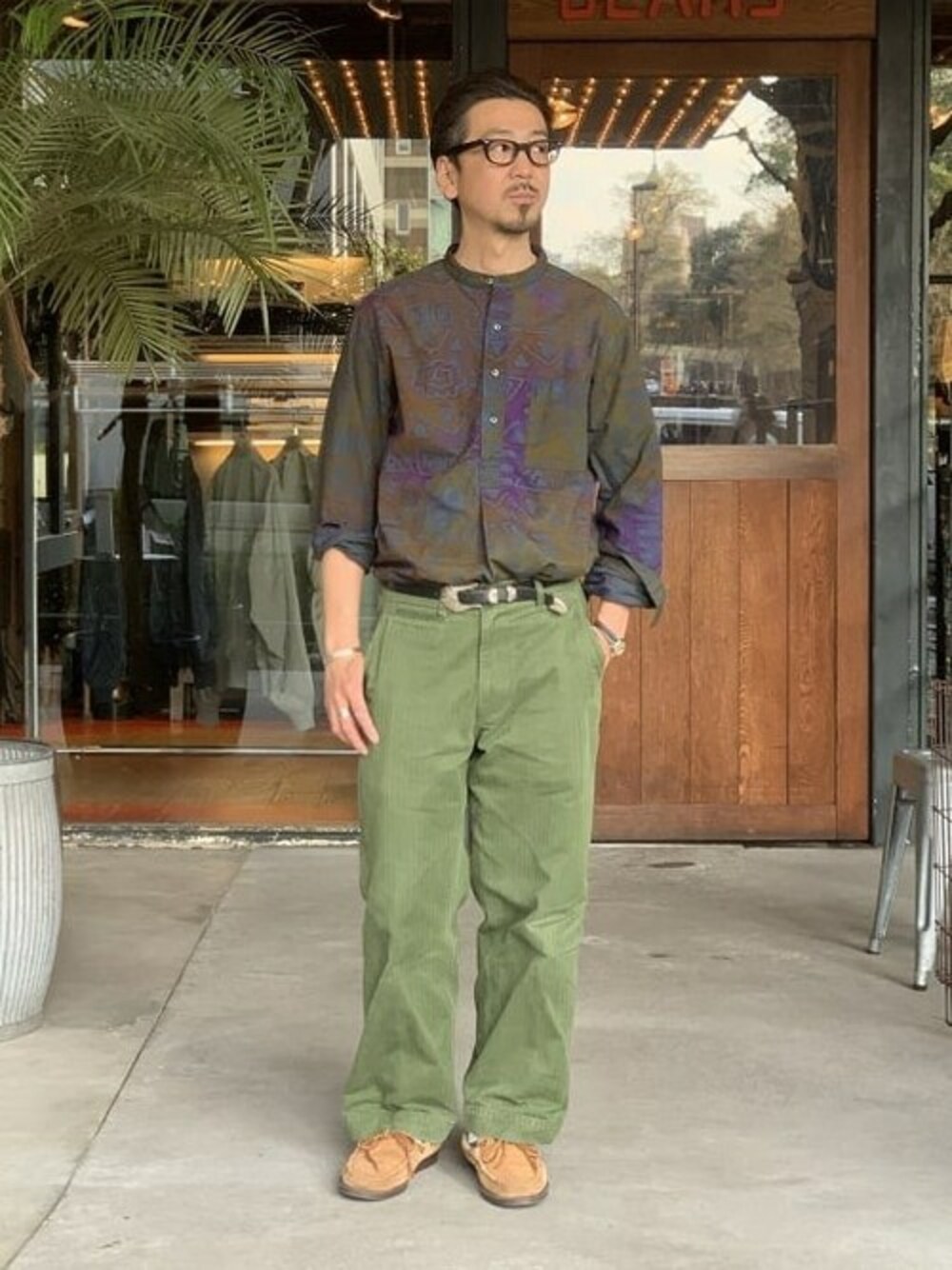 BEAMS PLUS(BEAMS MEN)のシャツ/ブラウス「BEAMS PLUS / バティックプリント バンドカラーシャツ」を使ったコーディネート