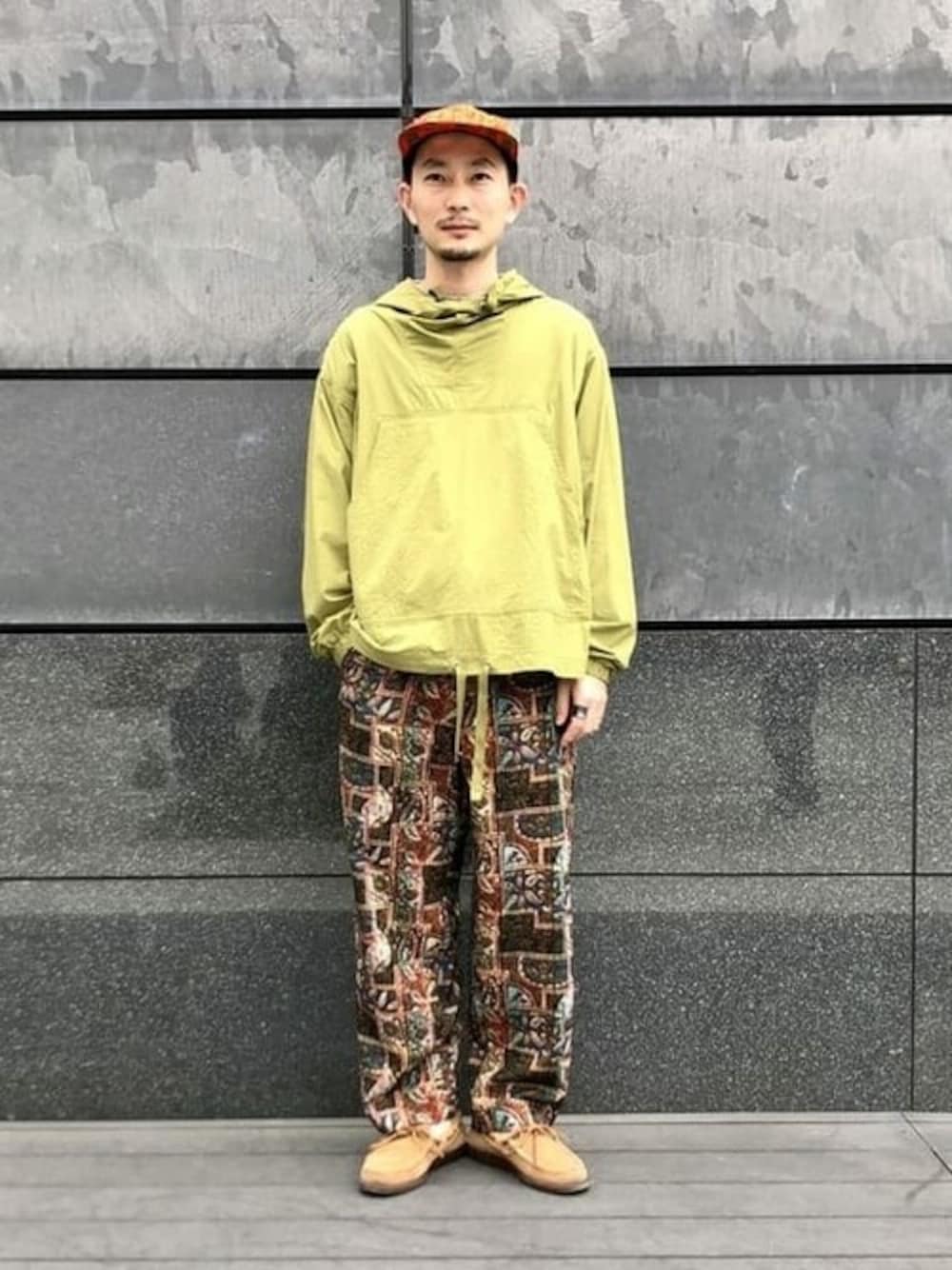 バティックプリントのイージーパンツは今季新型の推しアイテム。 リラックス感ある大人のムードを演出出来るパンツです。 リゾートと言うよりは、トラベル=リラックスと解釈をし、こちらもまたハイテク素材の快適なミリタリー アノラックを合わせました。