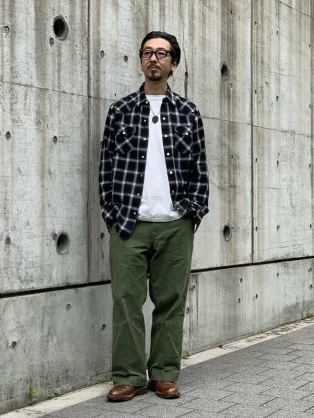オンブレチェックのカウボーイシャツは、ミリタリーパンツで捻りなく男らしさ満載のアメリカンカジュアルスタイルを。気軽に羽織りでのこなしで日常着らしさのあるスタイリングを表現しました。