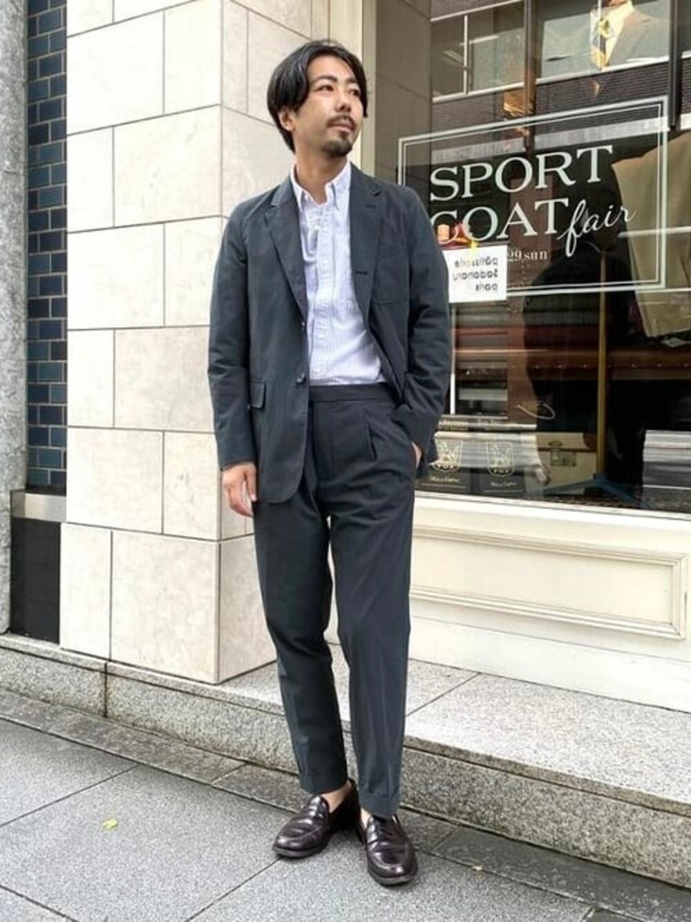 BEAMS PLUSのトラベルジャケットとトラウザーズでセットアップスタイルを楽しみました。 型自体は、非常にベーシックなアメリカンモデルをベースにしており現代的な素材使いが秀逸。今シーズンのトラベルシリーズは、コットンナイロンのややシャリ感ある目面としなやかさが感じる着用感が魅力的かと.... なんとも言えない独特なチャコールグレーが好みなんです。BEAMS PLUSのベーシックなボタンダウンシャツと合わせて、シンプルにコーディネートしています。