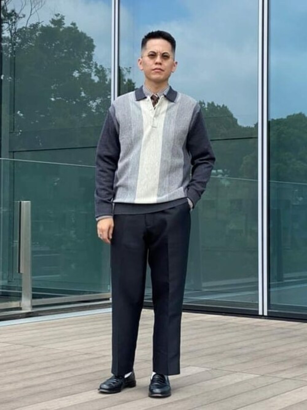 BEAMS PLUSのニットポロでスタイリング。タイドアップして首周りを華やかにしました。スタンダードなクルーネックやVネックもいいですが、こういった着こなしもおすすめです。もちろんニットポロとして単品でも活躍してくれます。 BEAMS PLUS / すずき しゅうじ