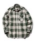 色使いを意識しながらミリタリーアイテムを中心にスタイリングを組みました。 リネン素材のチョアジャケットは軽快な印象を与えてくれますが、カバーオールをベースにしているのでアウターとして1サイズ上げて着用しました。インナーとシューズはアウトドア由来のアイテムを選び、ミリタリーアウトドアの着こなしを意識しました。 太めのヘリンボーンパンツを合わせアウターが浮かないようにバランスを整えました。 ビームス プラス 原宿 / 尾島 凌太