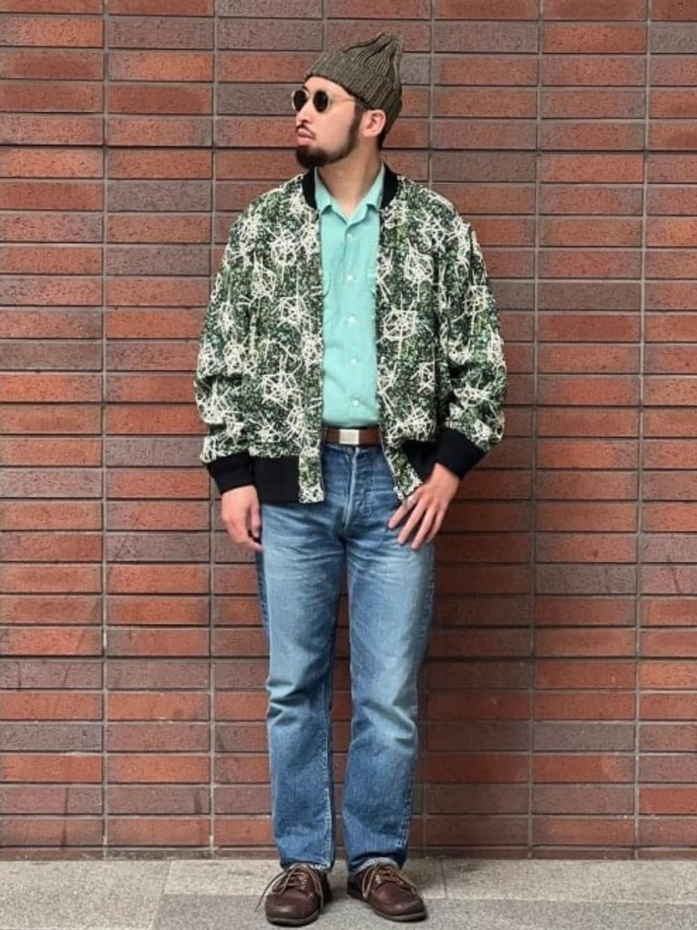 今回は50sらしいムードでスタイリング。好景気であった時代のポップなカラーリングのオープンカラーシャツは春らしい爽やかな印象を演出してくれる。アトミック柄のブルゾンと組み合わせれば当時のパワーが漲っていた若者らしい雰囲気に。淡くフェードしたジーンズと組み合わせ直球なスタイリングを意識しました。今回はニューヨークの路地裏で仲間たちとたむろするうちの一人をイメージしました。ビームス ライフ 横浜 / ろまんす吉澤