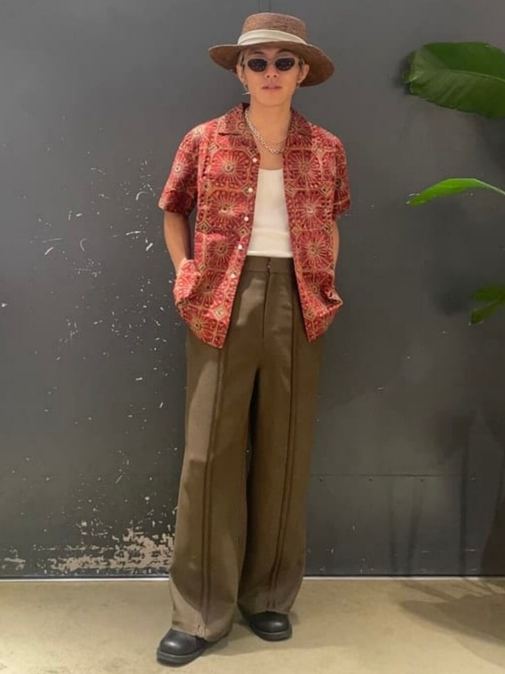 BEAMS PLUS(BEAMS MEN)のシャツ/ブラウス「フラワー プリント オープンカラー シャツ」を使ったコーディネート