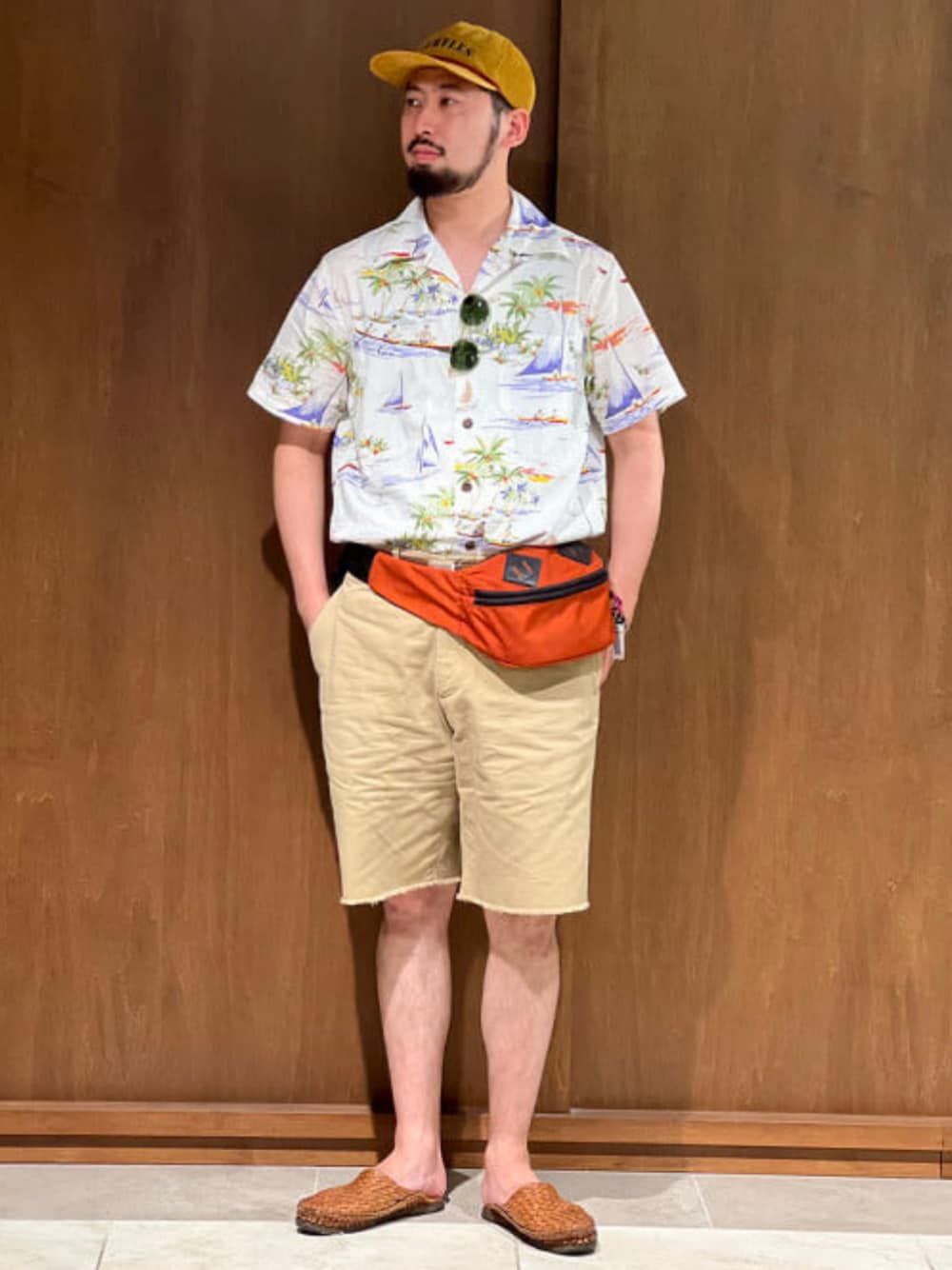 ハワイアンシャツの権威であるDALE HOPEに別注したハワイアンシャツ。クラシックな柄行が夏らしい印象を演出。コットンのボディで扱い易く、高温多湿な日本の夏の気候にも適しています。今回は家族パーティーでTボーンステーキを振る舞う為に地元の大型スーパーマーケットへと向かうハワイ在住の男をイメージしました。ビームス ライフ 横浜 / 吉澤九十五