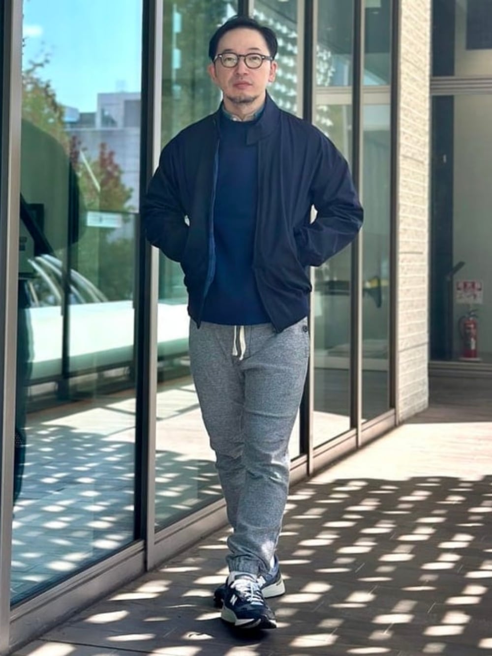 【BEAMS PLUS】の定番アイテムでスタイリング。 【別注】LOOPWHEELER / Athletic Sweat Crew Neckと【BEAMS PLUS / GYM Pants Nep】を合わせた、スポーティでリラックス感のあるカジュアルスタイルに、【別注】BARACUTA / G9 Classic Modelを羽織ることで、一気に上品さが加わります。