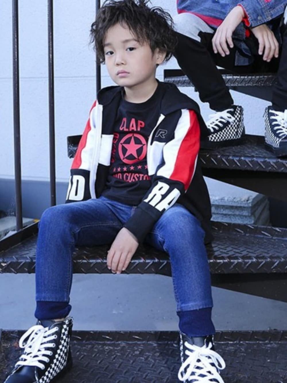 【RAD CUSTOM (ラッドカスタム)】 どんなアイテムとも合わせやすいカッコいいパーカーを定番のデニムで合わせました。 COOLな配色、スリーブとデニムのロゴがスタイルを印象的に仕上げます。 チェッカー柄のスニーカーがコーデのアクセントにピッタリです!